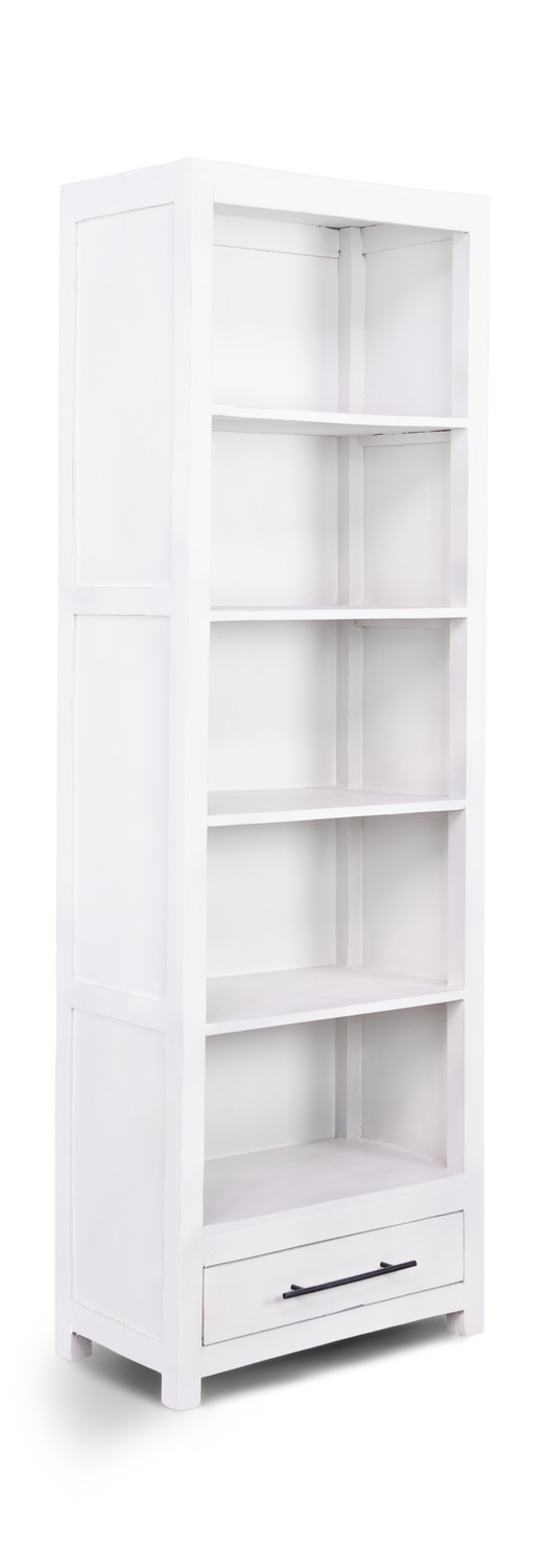 Add a touch of elegance to your home with the Waldorf Bookshelf from HOM Furniture. Finished in two sophisticated hues, choose between pearly gray or ebony. This versatile piece is perfect for both office spaces and living areas. Featuring five cubbies for display or storage and a convenient lower drawer, this bookcase offers both style and functionality. Its clean color complements any décor, making it a chic addition to any room. Upgrade your space with the Waldorf Bookshelf and showcase your favorite books and décor items in style.