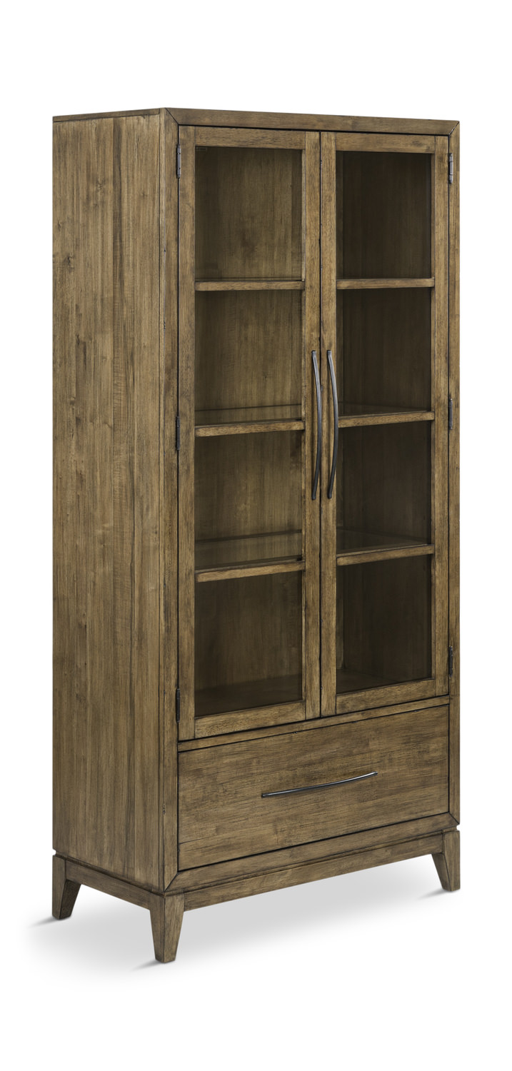Introducing the Shaker Lakes Bunching China from HOM Furniture, a stunning addition to your home decor collection. Crafted with a blend of hardwood solids and maple veneers, this display case exudes durability and elegance. The warm brown color and medium finish perfectly complement its transitional style, adding a touch of sophistication to any space. Equipped with innovative LED touch lighting, this china offers a modern and convenient way to showcase your favorite pieces. The three adjustable picture frame shelves provide versatility in displaying your items, making it a practical and stylish choice for your home.