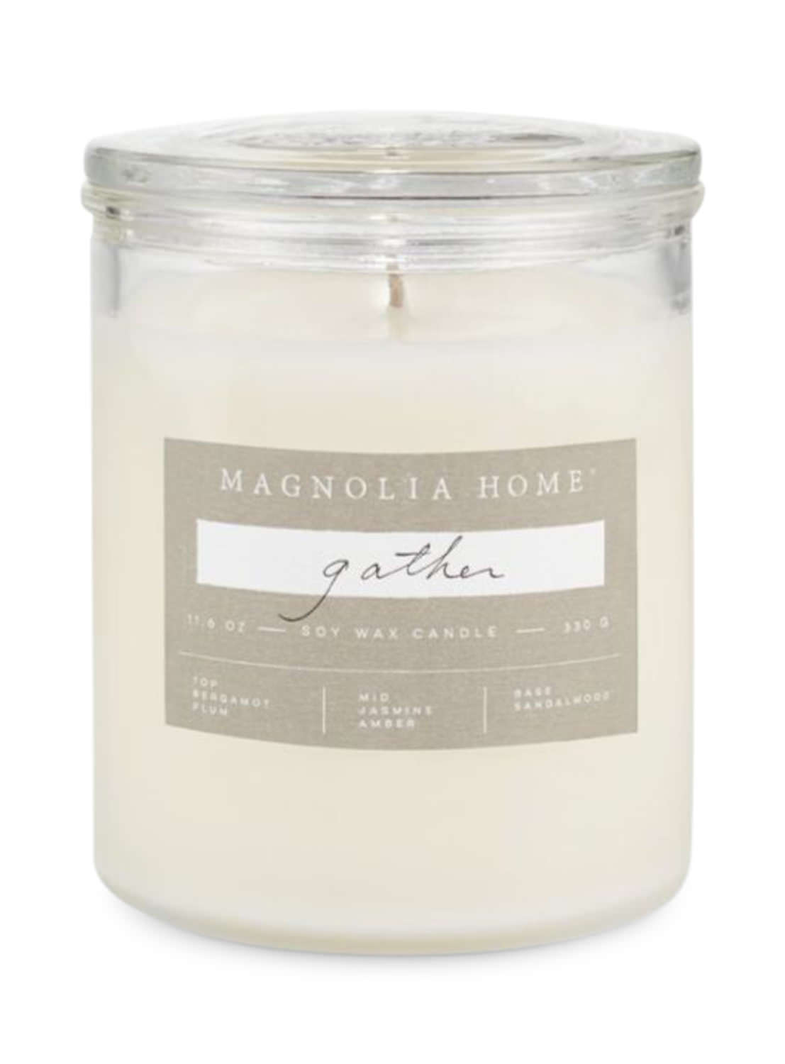 Designed for practicality yet delightfully stylish the Magnolia Home Glass Lid Candle will fit into any room of your home. Designed with a clear glass jar, glass lid and attractive paper label, this candle will be able to be placed in any room within any style. There are 6 different scents that are all named after Magnolia Home's intrinsic value system; bloom, love, dwell, gather, garden and restore. The natural soy wax will burn clean and leave the wonderful fragrant scent to dance around your home.