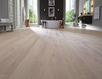 Featuring an inspirational design, Karastan laminate flooring faithfully replicates natural wood flooring thanks to the richly detailed construction with wide, long planks virtually indistinguishable from the real thing.