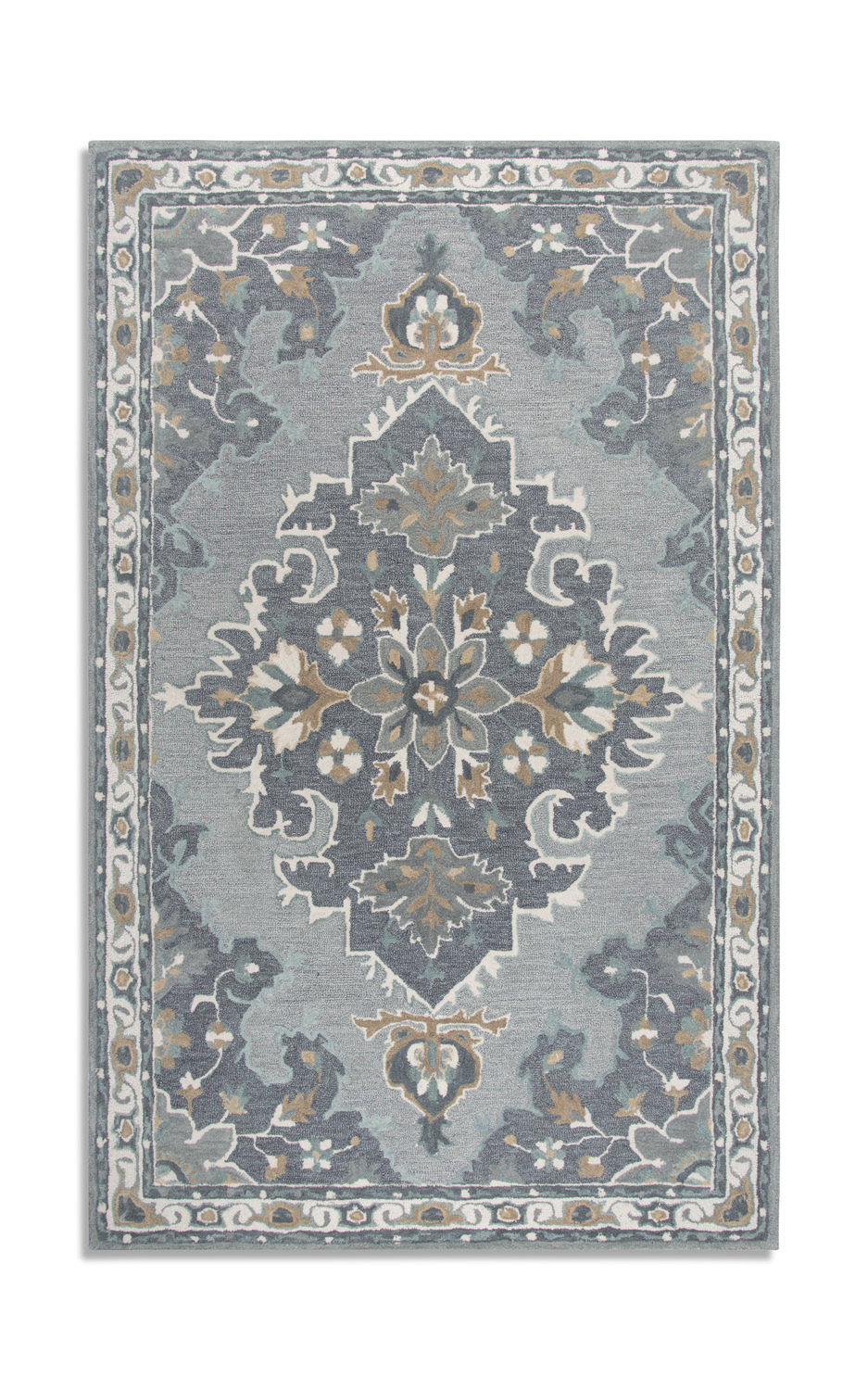 The Soft Grey Resonant area rug is hand-tufted and uses specialized dyeing techniques, varying yarn thickness and high and low pile to achieve a dramatic statement with texture and dimension. In this collection the designs have been adapted to reflect today styles using on trend colors and lines, notice the energetic medallions with ideal spacing.