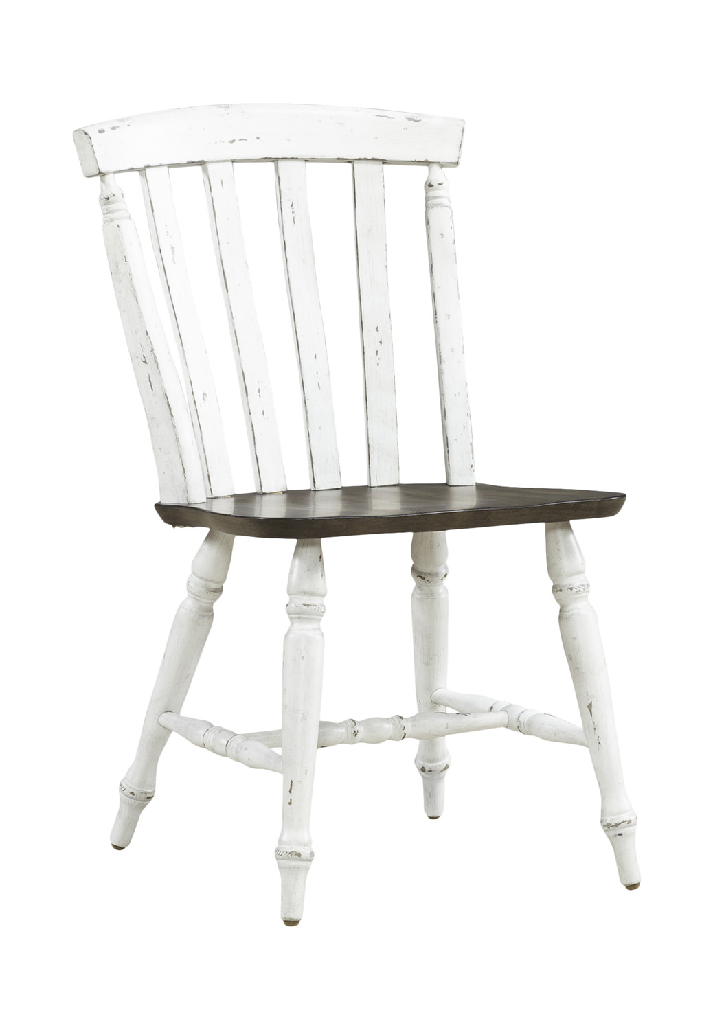 The Al Fresco dining chair has a lightly distressed white finish and a warm brown finish contoured seat. This casual farmhouse design is timeless in design. Made of hardwood solids.