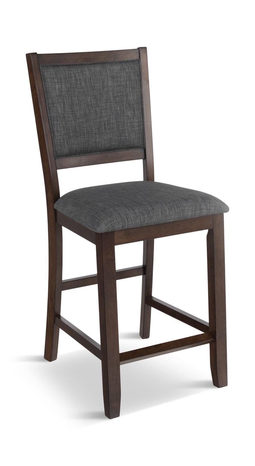 This classic counter stool is beautifully designed with a rich Falcon brown finish and solid hardwood construction. Its comfortable Mineral Gray upholstery provides a luxurious feel and adds an air of sophistication to any space. The Chesney Counter Stool is the ideal piece for creating a timeless, inviting atmosphere in your home.