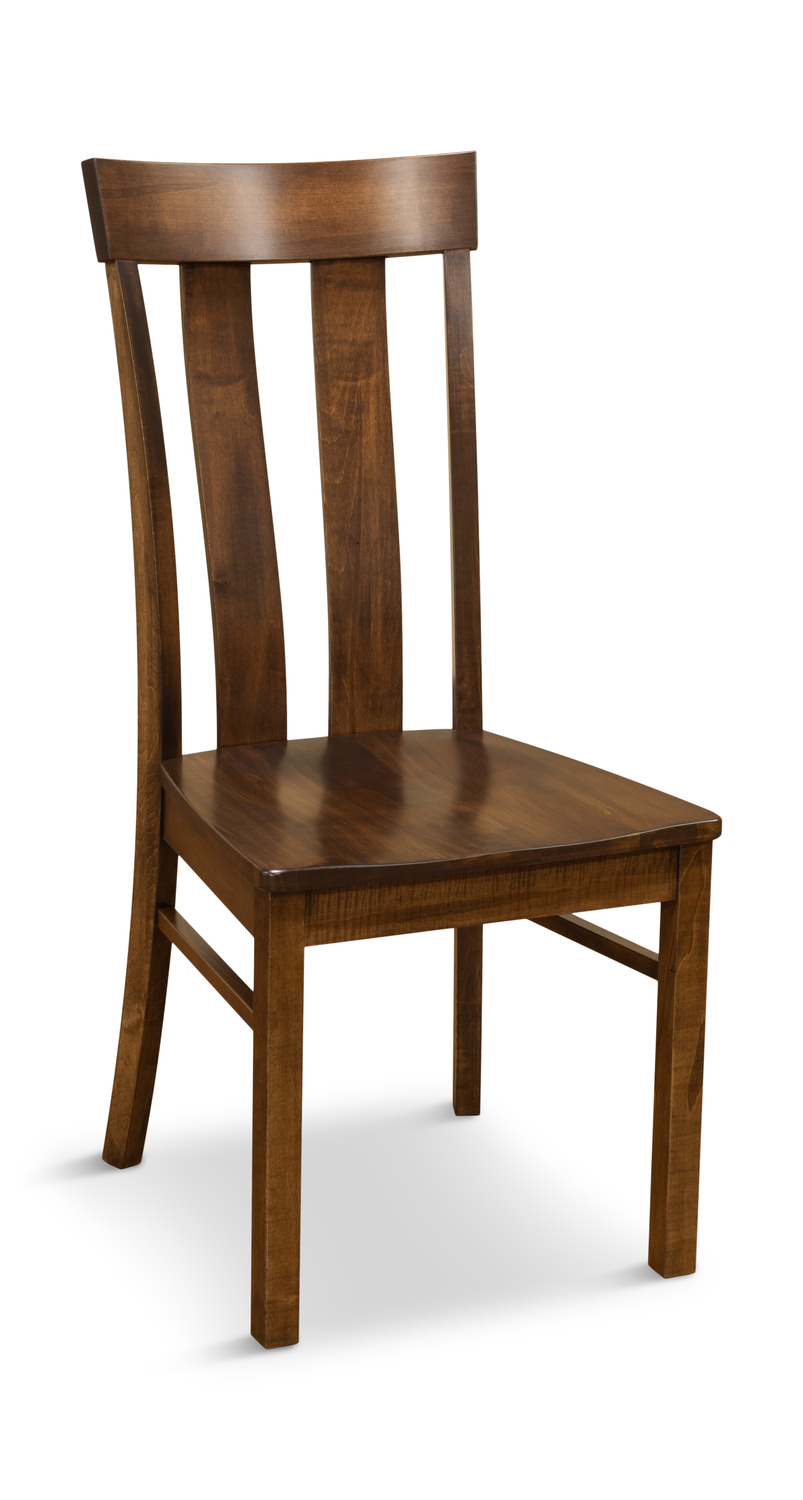 The Katherine dining chair is make of solid maple. The steam bent back is comfortable and slim. Stocked in the finish shown with custom order options available. Part of HOM's Amish Craftsmen collection.