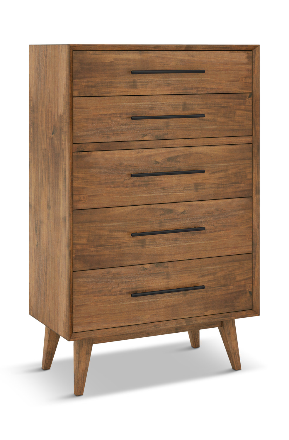 Introducing the Bergen Chest by HOM Furniture, a stunning addition to your bedroom décor. Crafted from high-quality Acacia wood with a medium brown finish, this chest exudes modern style and sophistication. The French and English dovetail drawers, along with metal ball bearing drawer glides, ensure smooth and durable functionality. The cedar-lined bottom drawer adds a touch of luxury, while the felt-lined top drawer keeps your delicate items safe and secure. Perfect for storing your clothing and accessories, the Bergen Chest is a beautiful combination of style and functionality.