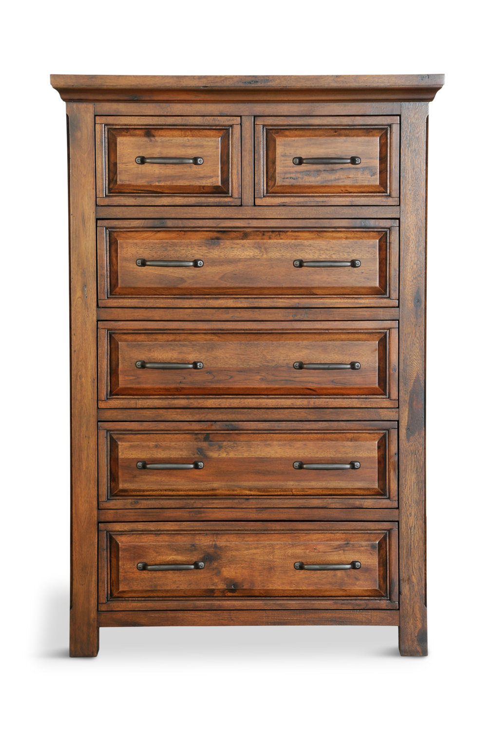 Introducing the Hillview Manor 6 Drawer Chest, a timeless and versatile piece that seamlessly blends transitional and farmhouse styles. Crafted from rich Mahogany wood with veneered side panels, this chest features a hand-rubbed finish that highlights the natural beauty of the wood. The relief cut top and floating top construction adds a touch of sophistication, while the solid wood top, fronts, and frame ensure durability. With its medium brown finish and urban-inspired design, this chest offers ample storage space and a touch of rustic charm to any room.