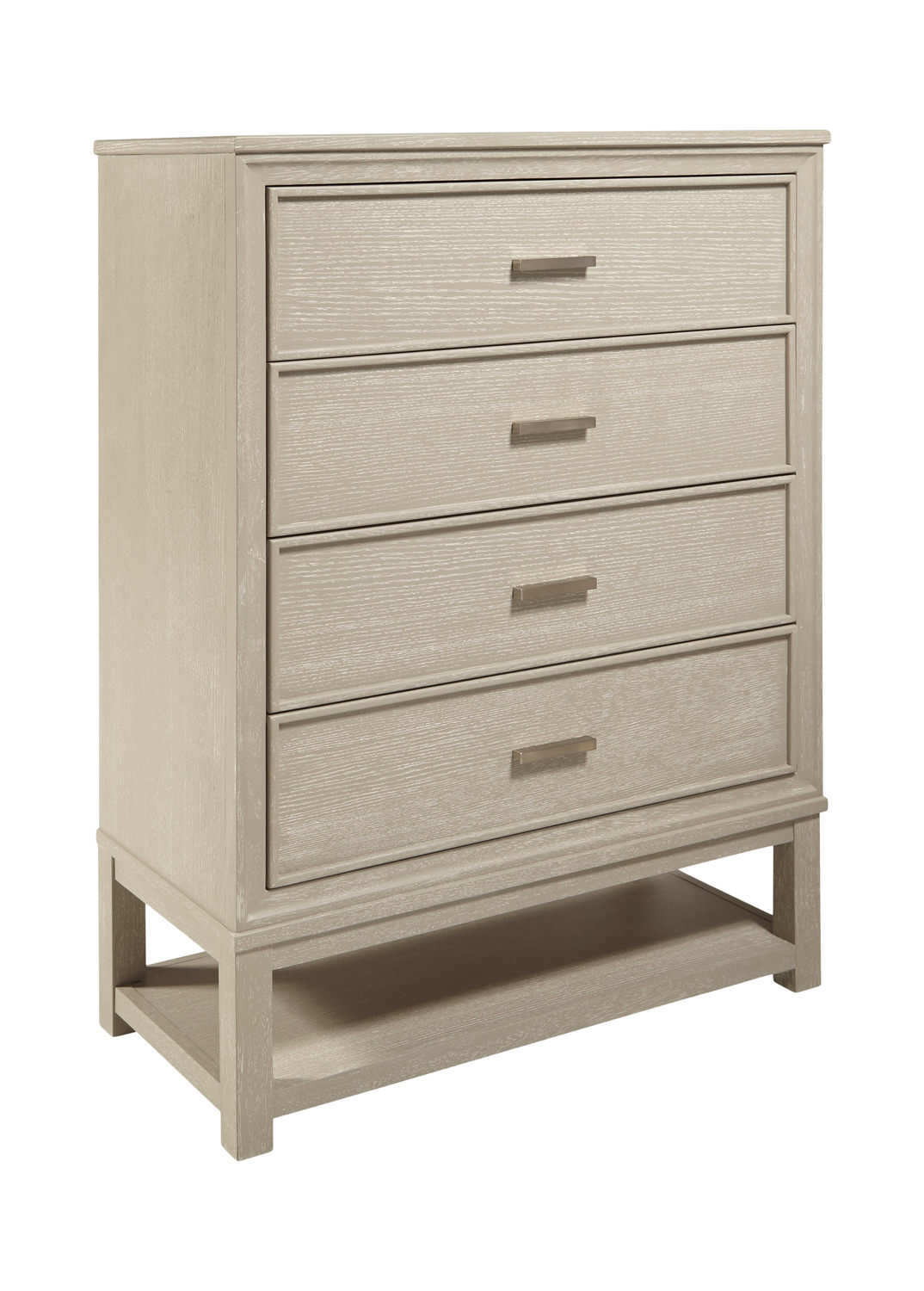 The Riverview Chest features a Sherwin William finish, Italian Carrara marble top, full extension drawer glides, and is crafted from oak veneer over solid hardwood. It is accented with clean and simple hardware with an open shelf on the bottom.