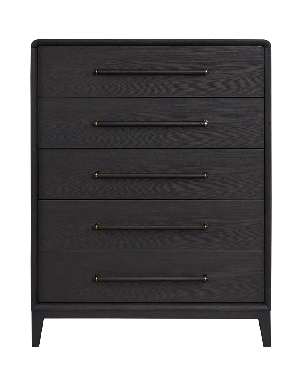 The Xavier 5 Drawer Chest from HOM Furniture, where luxury meets functionality. Crafted with exquisite Poplar solids and Elm veneers in a captivating peppercorn finish, this piece exudes modern elegance. The unique long drawer pulls add a touch of sophistication, while the soft-close drawer glides ensure smooth and quiet operation. Designed to impress, the Xavier 5 Drawer Chest in sleek black color and dark finish is the perfect addition to your contemporary decor. Its versatile design makes it suitable for both Drawer Chests and Door Chests, providing ample storage space for your essentials.