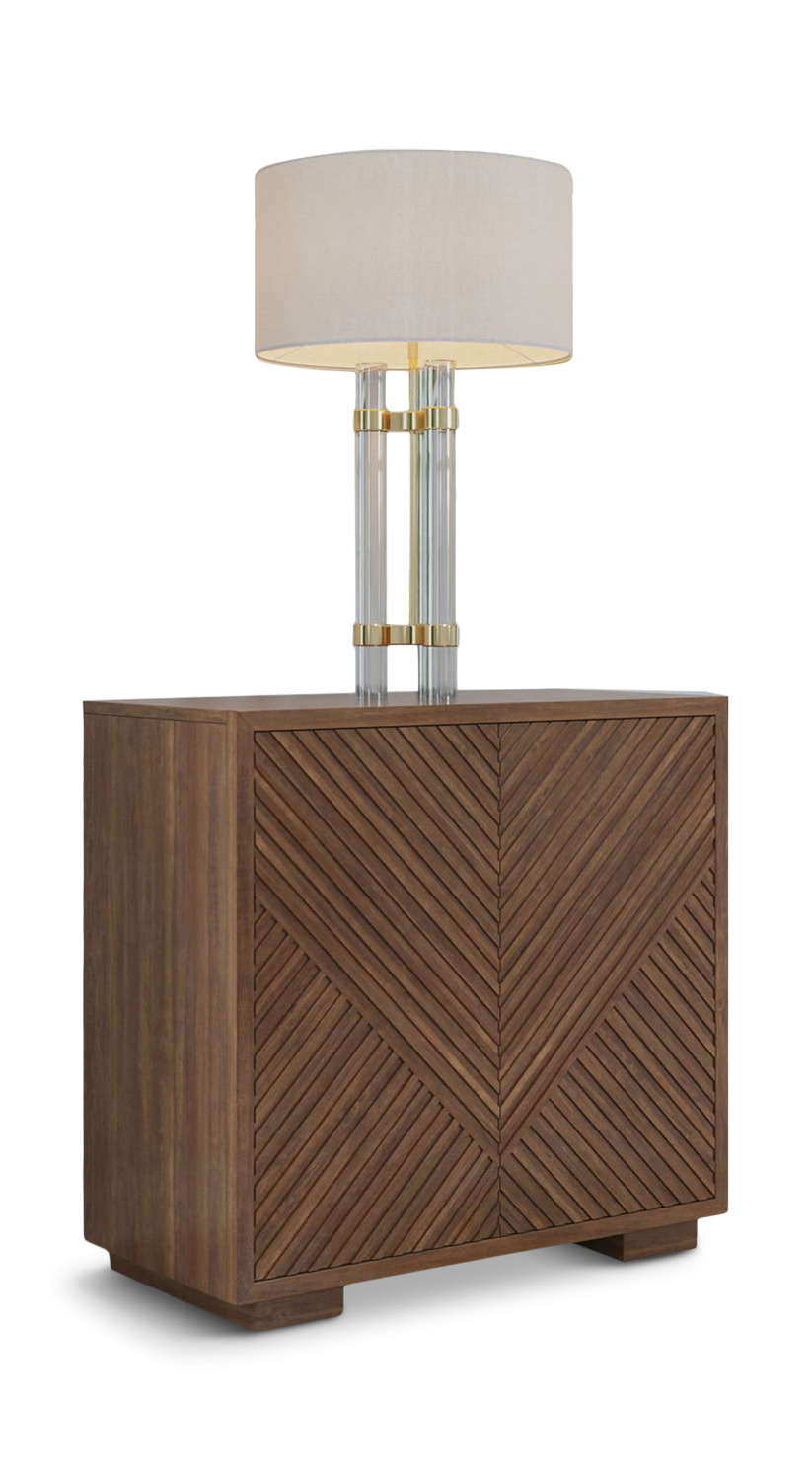 Appreciate the geometric and simplistic beauty of the Easton 2 Door Accent Cabinet available at HOM, a sophisticated storage solution that blends seamlessly with modern styling and offers timeless elegance in a small footprint. Crafted with precision and great attention to detail, this cabinet features one adjustable shelf behind the pair of doors, allowing you to customize the interior space to suit your needs. Designed with European soft close hinges for smooth and quiet operation, this cabinet is made from the highest quality Poplar solids with Walnut veneers, ensuring both durability and satisfaction over its life of use. The Urban Bronze finish adds a touch of urban sophistication, while the reeded (doors) pattern creates a subtle yet eye-catching texture.