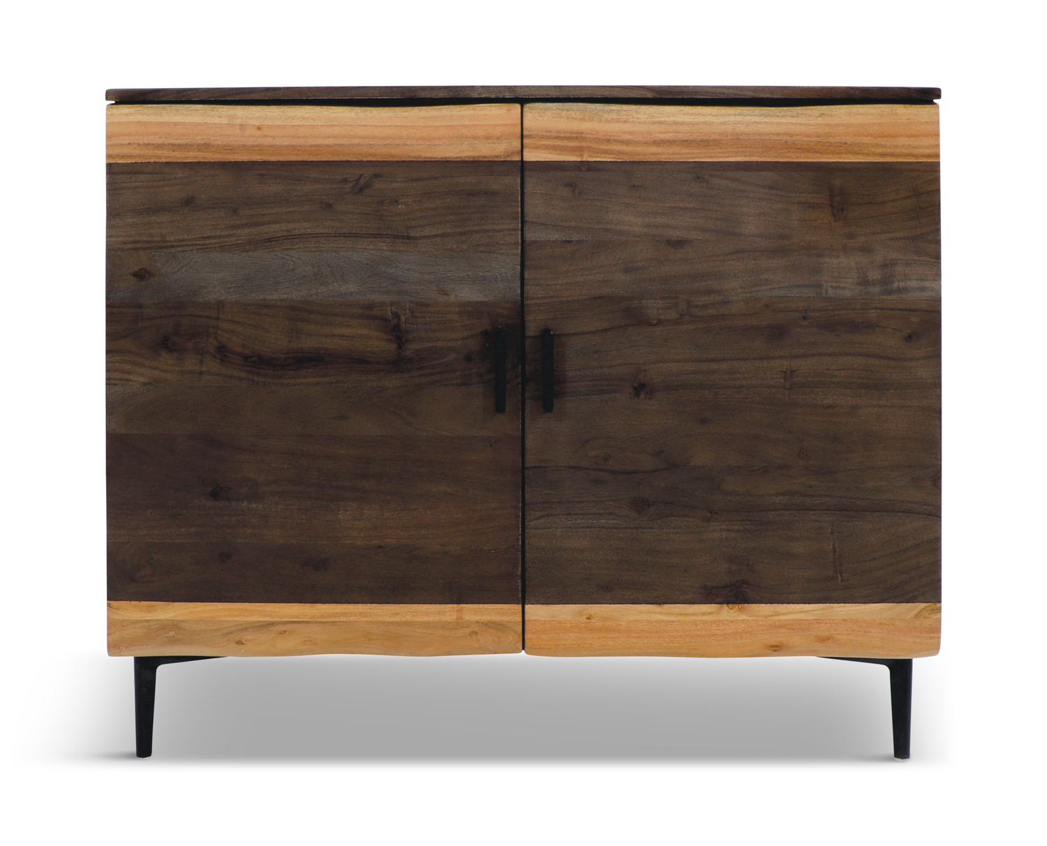 Introducing the Enzo 2 Door Live Edge Sideboard from HOM Furniture. This stunning piece features sleek black hardware and feet finish, adding a touch of modern elegance to any space. The live edge detailing ensures that each sideboard is truly one of a kind, making it a unique addition to your home décor. With its perfect mix of wood tones, the Enzo Sideboard effortlessly blends with a variety of interior styles. Elevate your space with this functional and stylish furniture piece from HOM Furniture.