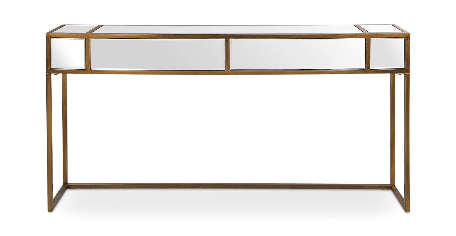 - Classic And Sophisticated, The Reflect Console Is Made With A Solid Iron Frame Finished In A Brushed Aged Gold And Mirrored Accents.