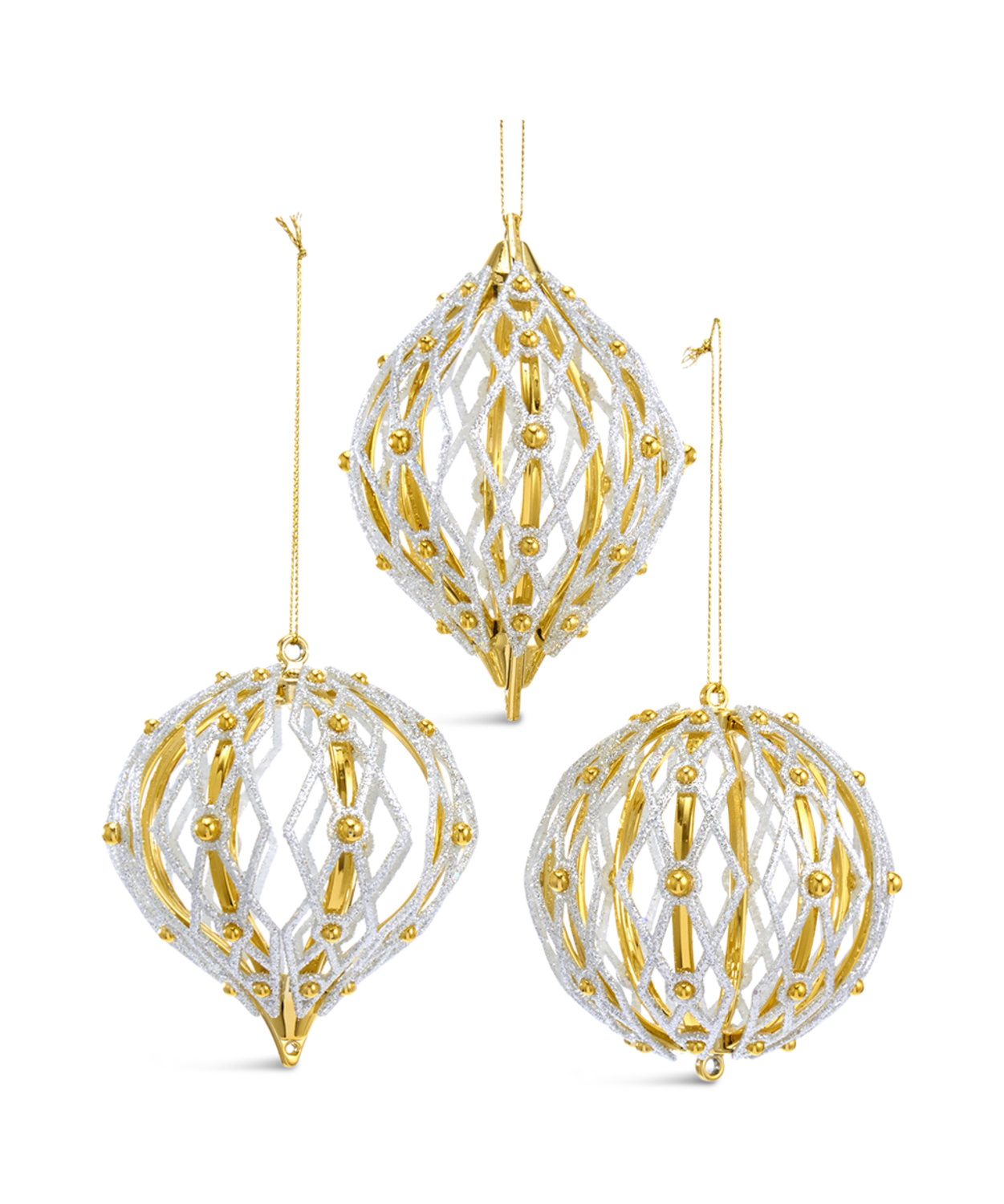 Introducing the exquisite gold with silver accents Ball Ornaments from HOM Furniture! Add a touch of elegance to your holiday decor with these stunning ornaments, sold separately in three different shapes. The luxurious gold color and intricate silver accents make these ornaments a must-have for your indoor holiday display. Embrace a traditional style this season and bring a touch of sophistication to your home with these beautiful Ball Ornaments.