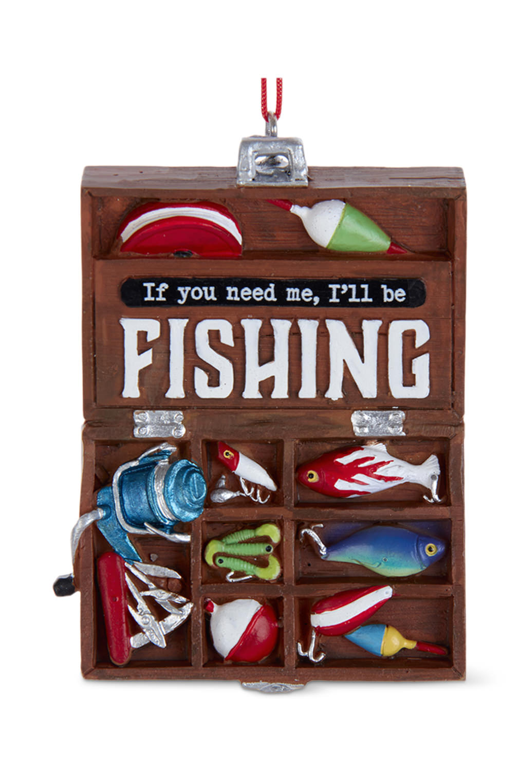 Introducing the "Catch of the Day" Fishing Tackle Box Ornament by HOM Furniture! This quirky and adorable holiday decor piece is the perfect addition to your tree this season. With its vibrant red, brown, and blue colors, it will surely stand out among your other ornaments. Whether you're a seasoned angler or just love a good fish tale, this ornament is sure to reel you in with its charm. Avoid getting hooked on boring decorations and add some fun to your holiday decor with this unique piece from HOM Furniture!