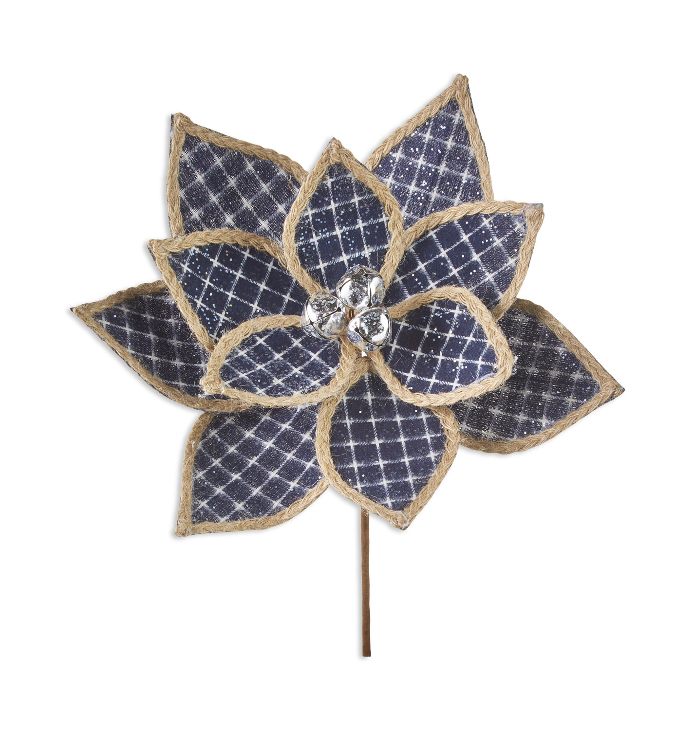 Blue plaid poinsettia stems with jewels are eye-catching for Christmas centerpieces, wreaths, and garlands. They are definitely fun statement flower for Christmas or any time of the year.