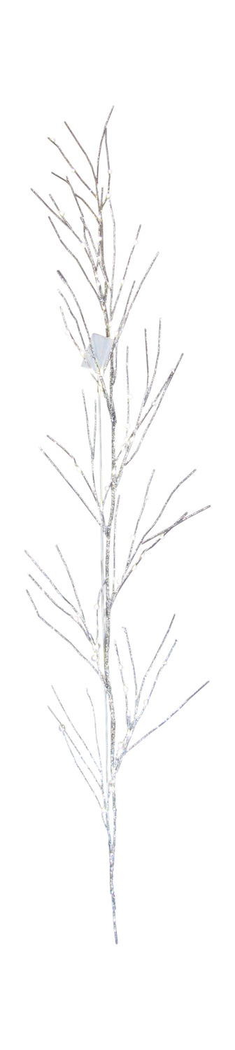 The 70" Silver Glitter LED Garland is a wrapped white glitter garland. It is a unique look for your mantel or staircase. It has 60 warm white LED lights and is for indoor use only. This holiday garland requires 3AA batteries (not included).