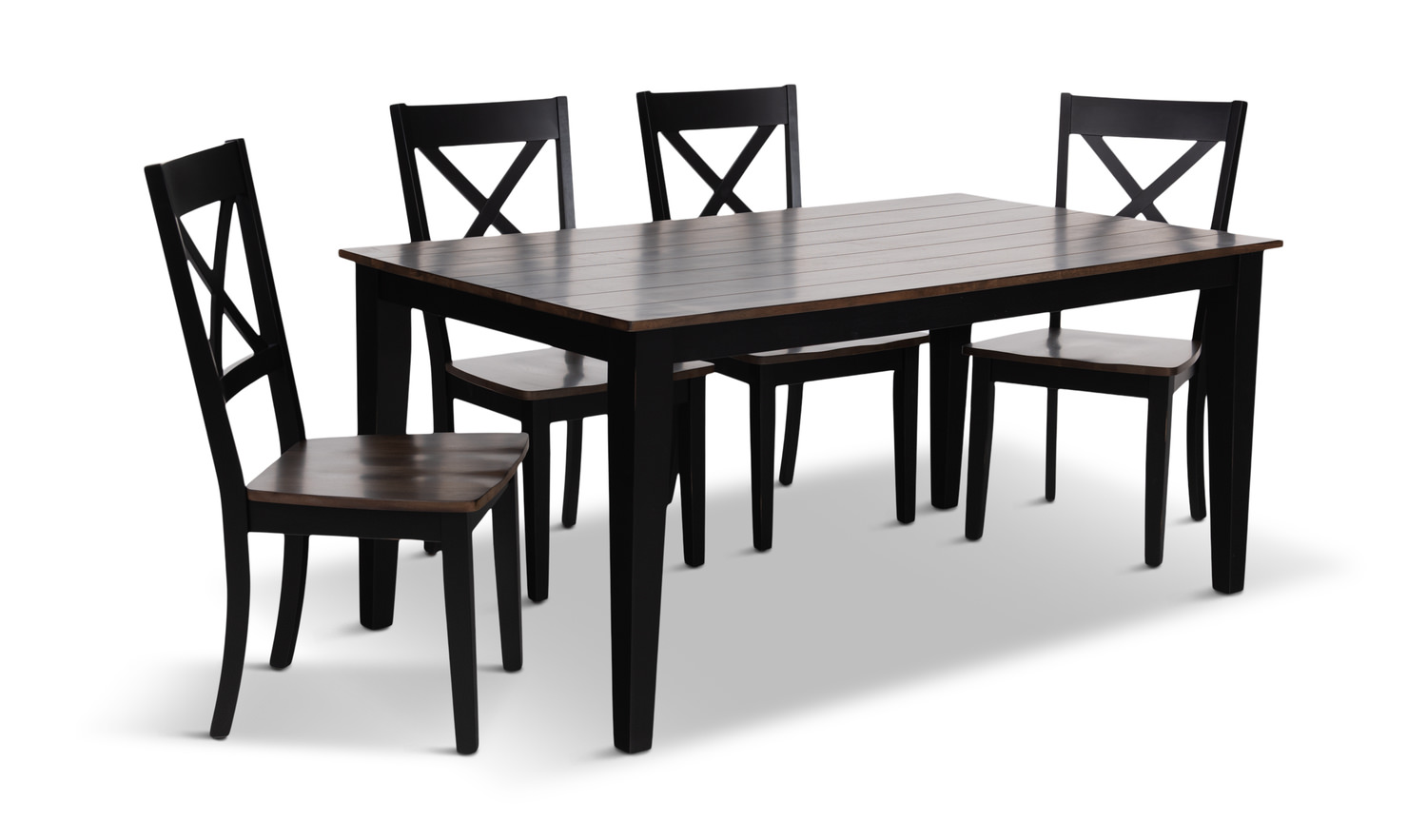 The À La Carte Dining Table And 4 Chairs offers a warm, rustic farmhouse design on a budget! The 38" x 66" fixed top table is made of solid wood. The set includes the dining table and 4 side chairs. Additional chairs are available, which allows this set to seat up to 6 people! The À La Carte Dining Table And 4 Chairs features a warm cashew finished tabletop and and chair seats.