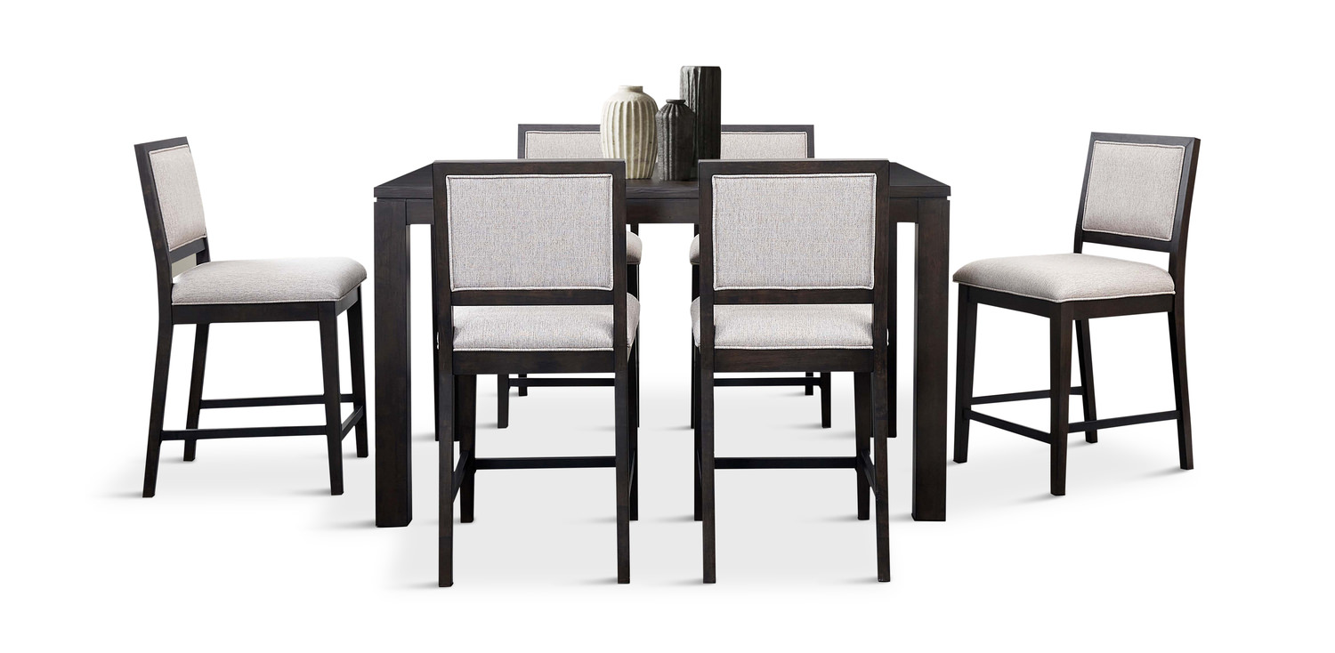 Experience the epitome of modern luxury with the Oscar Counter Table from HOM Furniture. Crafted from a blend of hardwood and veneer, this sleek and sophisticated table exudes elegance with its dark finish and color. The table expands from 42 to 60 inches with the included 18-inch butterfly leaf, providing ample space to comfortably seat 4 to 6 guests. The counter table adds a contemporary touch to your dining space, making it perfect for both casual meals and formal gatherings. Elevate your dining experience with the Oscar Counter Table and create a stylish centerpiece that is sure to impress.
