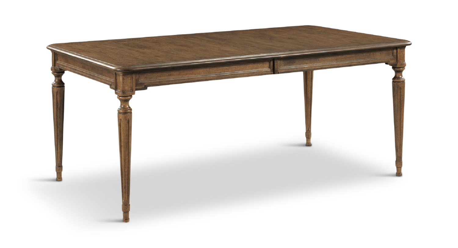 Introducing the exquisite Genevieve Dining Table in the Fine Furniture Gallery, a true masterpiece crafted from solid adler wood. Designed with Kinguard performance finish, this table is not only stunning but also practical, offering protection against watermarks and stains. Its versatility shines through with 2 x 20" leaves, one of which is self-storing for convenience. The additional center support leg ensures stability and support when the leaves are in use. The warm brown finish and detailed edge add a touch of sophistication to any dining space. Elevate your dining experience with the Genevieve Dining Table - where quality meets elegance.