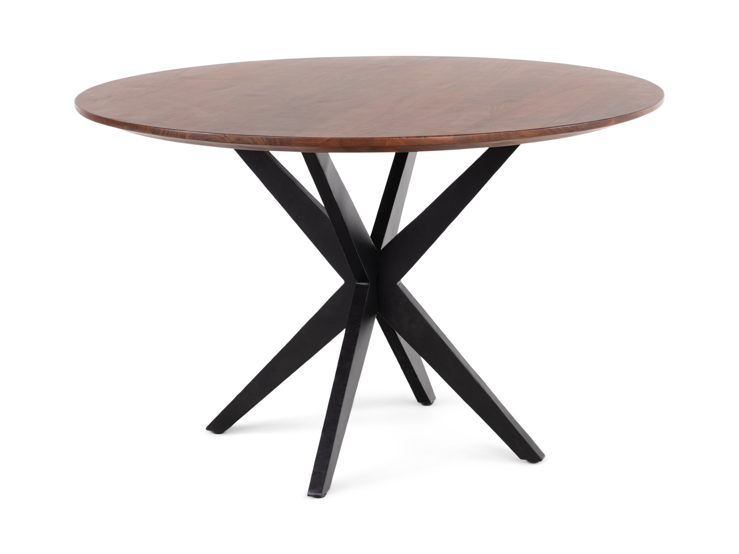 Add a touch of modern style to your dining space with the Palma 48" Round Dining Table from HOM Furniture's Uptown gallery. Crafted from solid acacia wood with an inverted beveled edge, this table exudes a contemporary charm. The sleek black metal star base not only provides stability but also adds an industrial flair to your décor. With enough space to comfortably seat 4-6 people, this dining table is perfect for intimate gatherings or family meals.