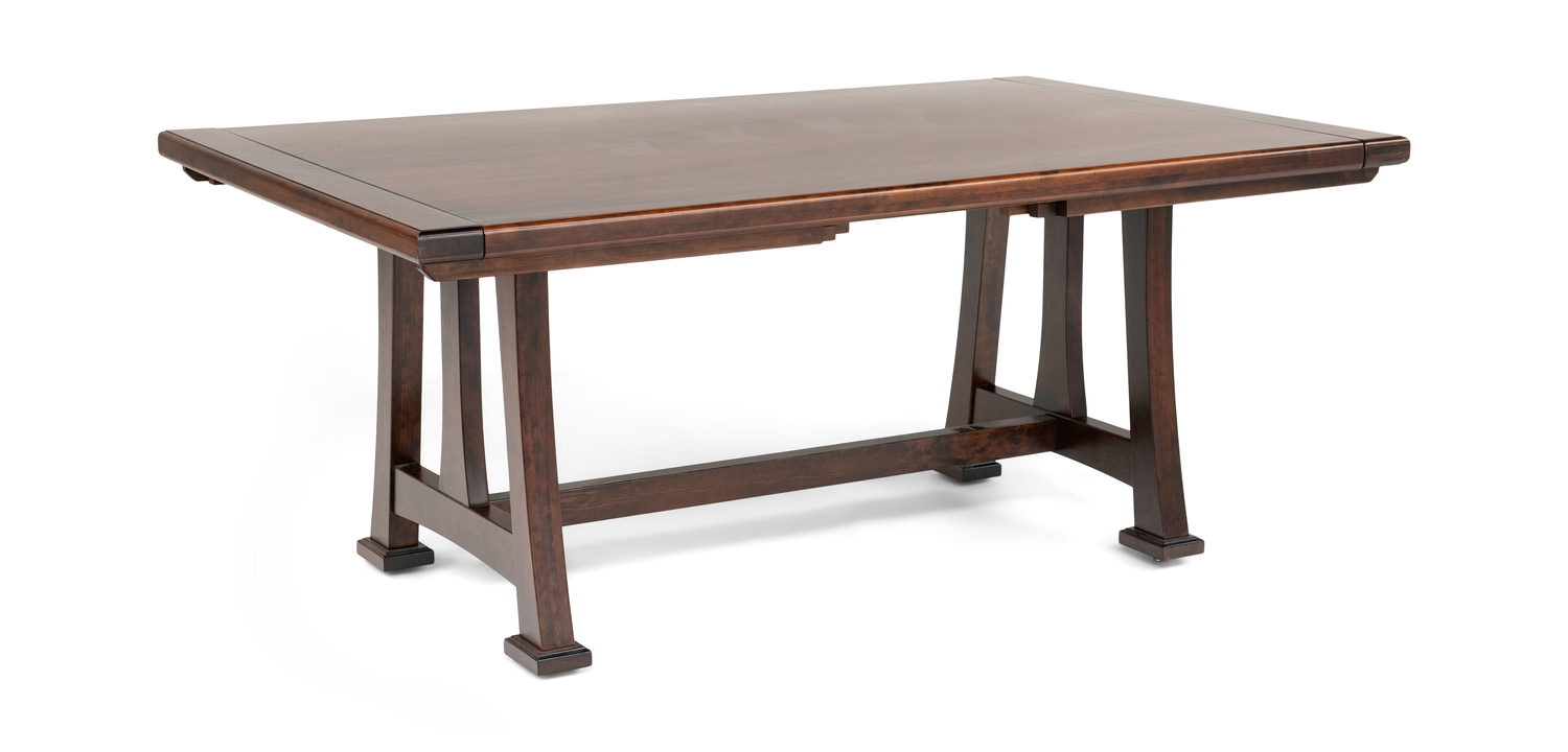 The Springfield trestle table is made of solid knotty cherry. It's 45" x 72" and has 2-16" refectory style leaves. Table is 104" when fully extended. The Springfield table is part of HOM's Amish Craftsmen collection.