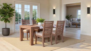 Emerson Solid Mahogany Dark Taupe Trestle Table With 4 Chairs