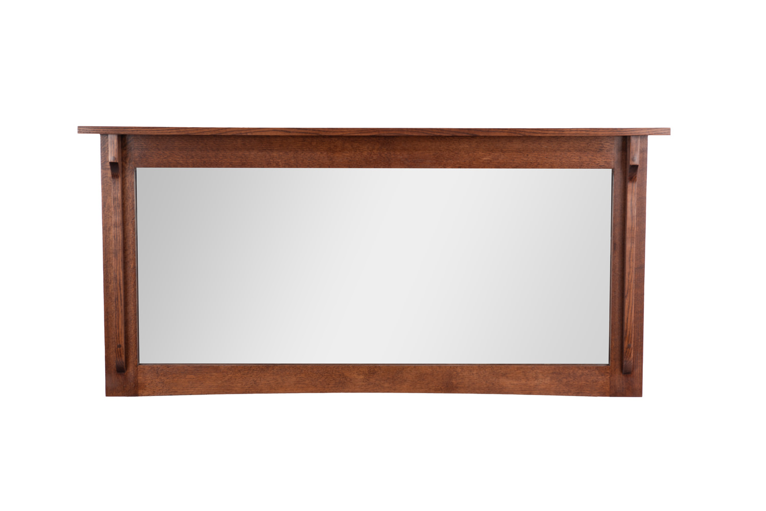 This handsome arts and crafts American Mission II collection is made in the USA. It focuses on comfort while indulging your need for style with minimal fuss. The collection features solid and veneer quartersawn red oak with a rich warm finish that highlights the natural wood grain. The mirror features beveled glass.