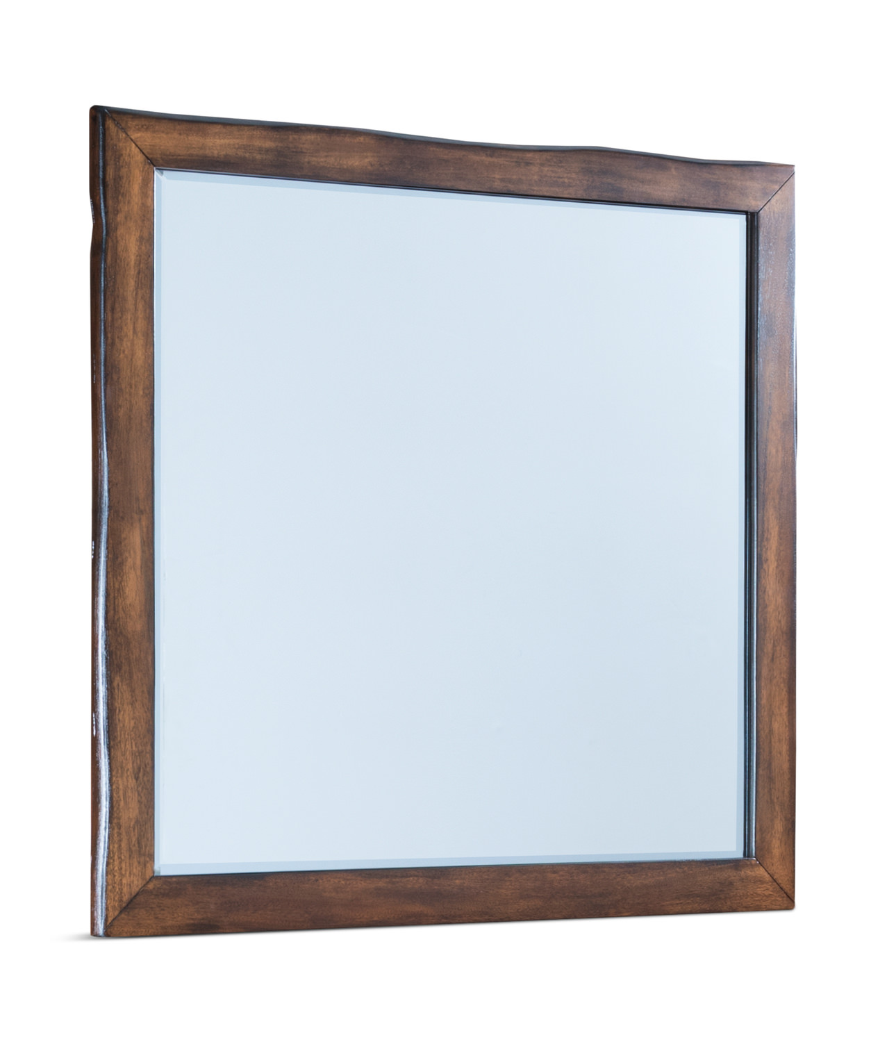 The Arcadian II Mirror is a fresh interpretation of a rustic chic look. The edges, shaped by hand for the appearance of a cut log. It features a textured black finish with wear-through and distressing.