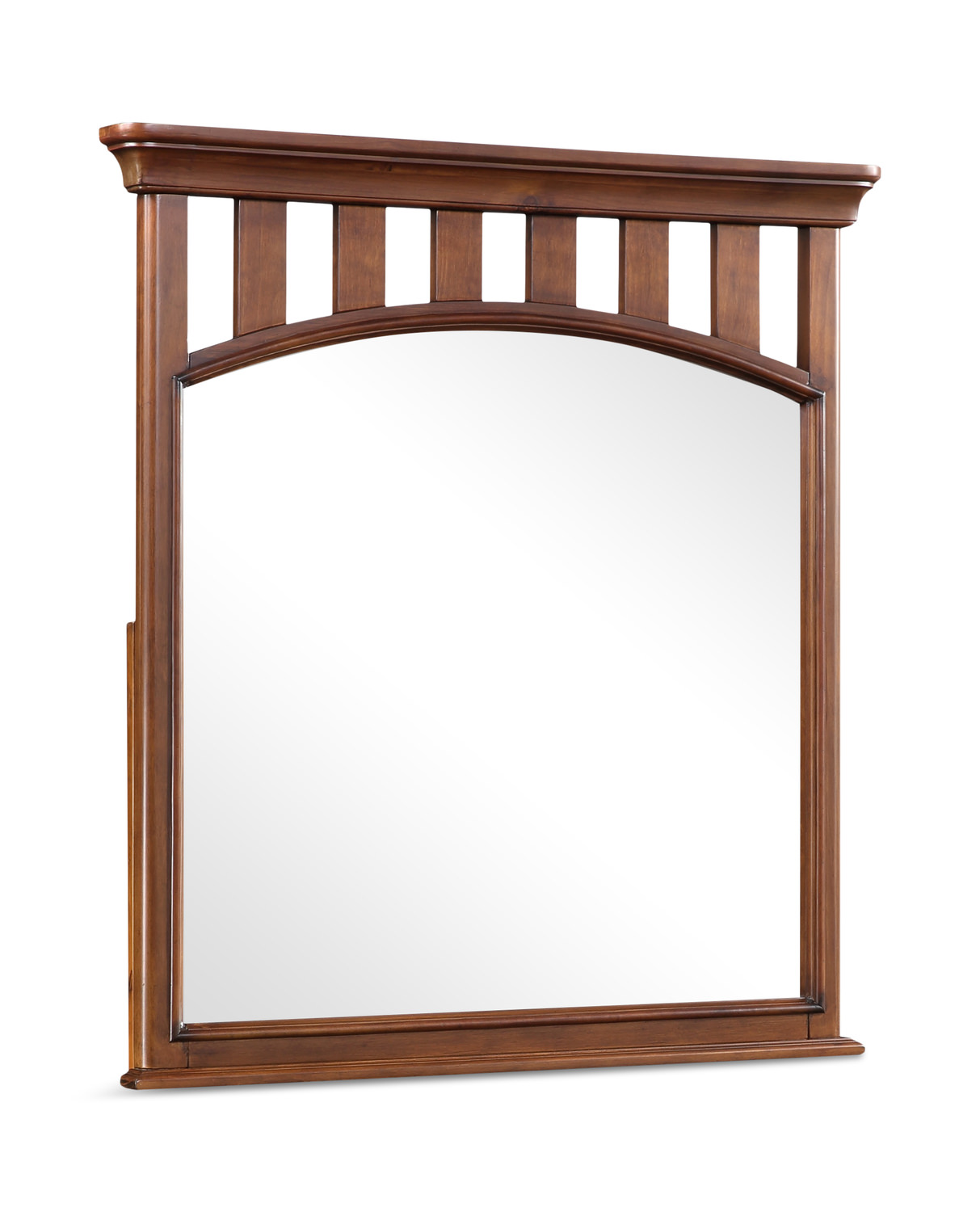 The Cassidy Mirror is made with solid pine and birch veneers that are finished in a warm cherry coloration. It is highlighted with trim details that add to the traditional feeling of this mirror.
