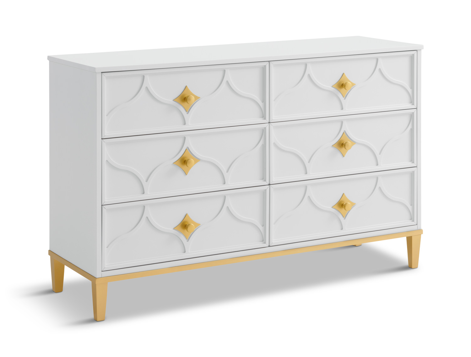Introducing the Emma Jayne Dresser by HOM Furniture, a stunning blend of traditional elegance and modern functionality. Crafted from poplar solids and veneers, this dresser exudes quality and durability. The English dovetail on drawers ensures strength and longevity, while the roller ball bearing steel drawer glides provide smooth and effortless opening and closing. In a crisp white finish with gold accents, the Emma Jayne Dresser adds a touch of fresh sophistication to any bedroom décor. Its traditional style and veneer wood construction bring a timeless charm to your living space. This dresser is perfect for those who appreciate classic design with a touch of contemporary flair.