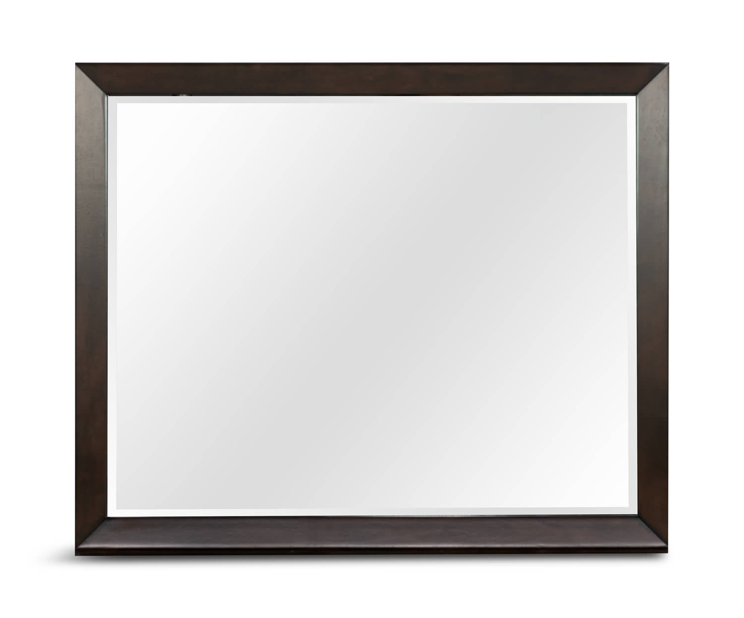 The Marcel Mirror is made to coordinate with the Marcel dresser as a perfect pairing. This mirror is made with rubberwood solid wood with oak or mahogany veneers. The simple picture frame detailing around the mirror adds detail and a modern style. The inset mirror has a slight bevel which creates a finished look as well as a slight sparkle to the mirror. The dark wood finish will also look stunning in your bedroom against your light color walls.