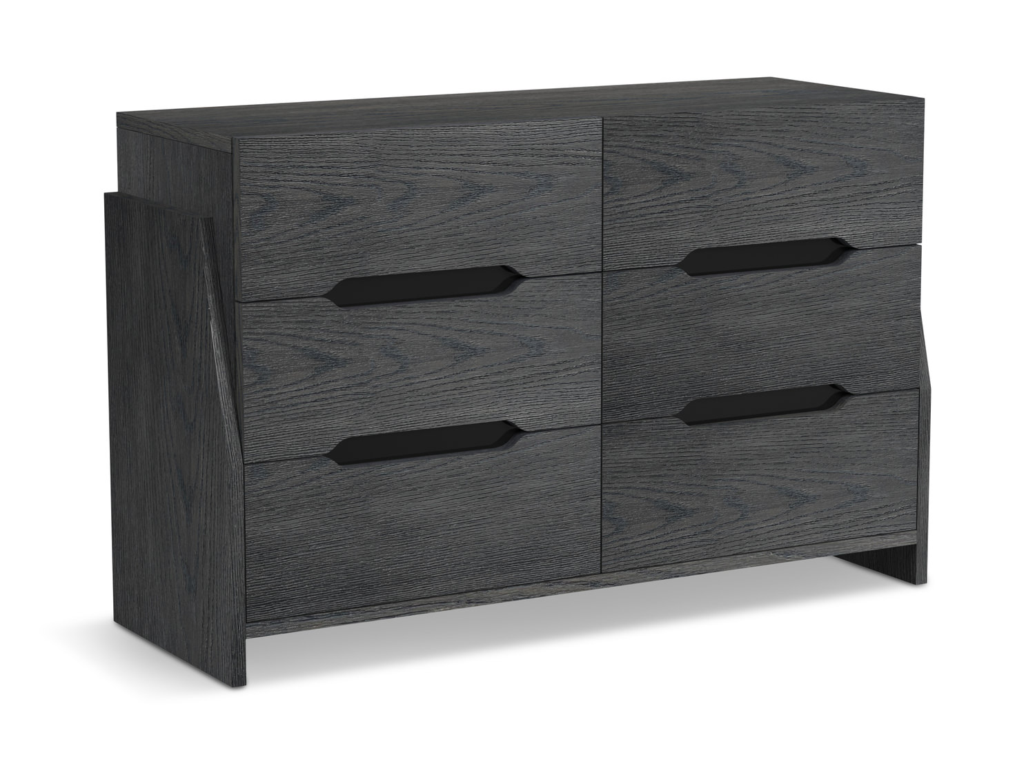 Introducing the Ravens Edge 6 Drawer Dresser in a sleek Midnight Blue finish by HOM Furniture. This dresser features ball-bearing drawer glides for smooth opening and closing, English dovetail front and backs for added durability, and a felt-lined top drawer to protect your delicate items. Crafted from high-quality oak veneer and veneer wood, this dresser exudes a modern style with its painted Midnight Blue color. Organize your essentials in style with this chic and functional piece from HOM Furniture.