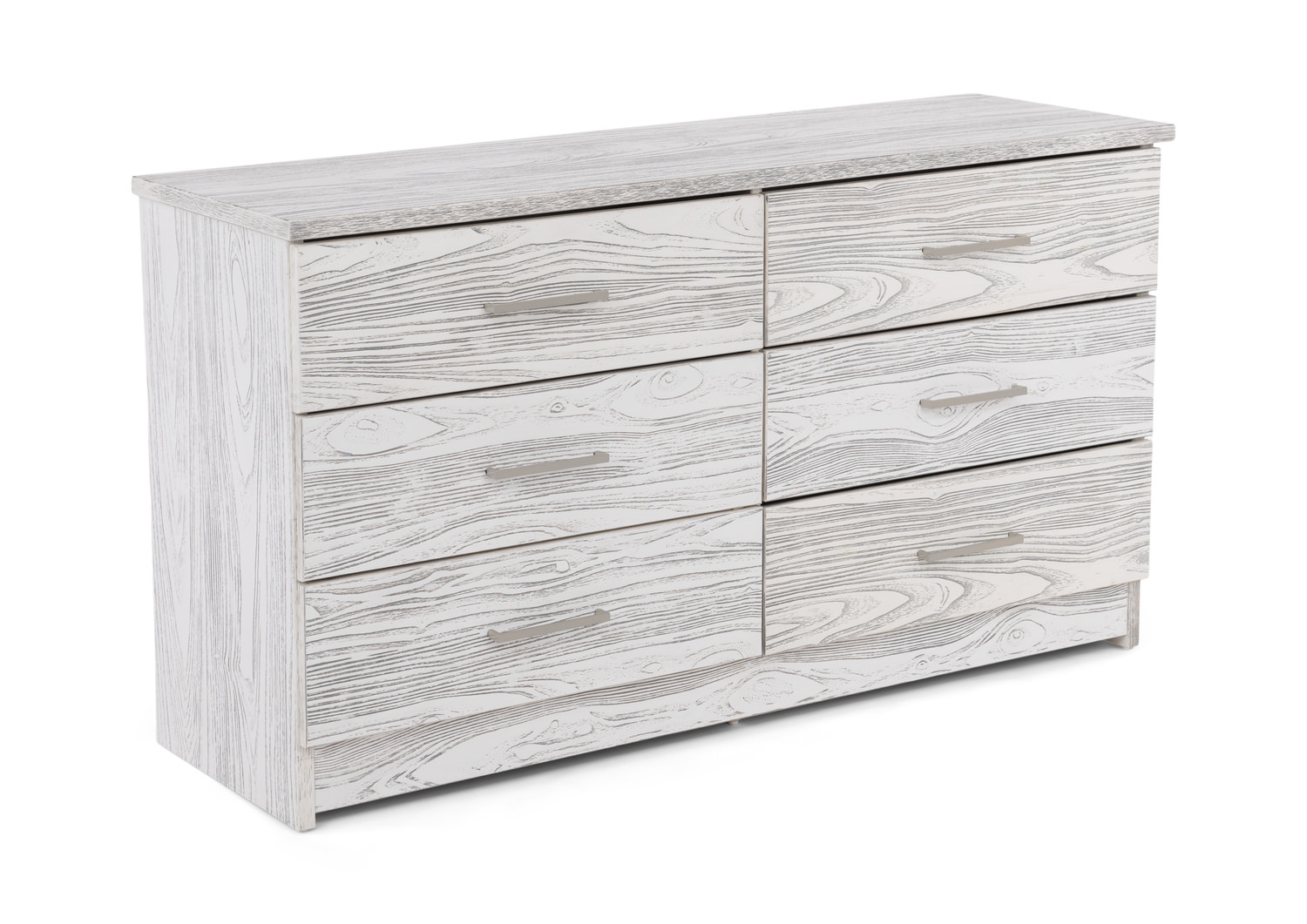 Introducing the Skyler Dresser, a beautifully crafted piece made with solid wood construction for durability and longevity. The embossed grain adds a touch of elegance, while the recessed back provides a sleek and seamless look. The euro roller glides ensure smooth and effortless drawer operation, with a built-in stop for added convenience. Made from 100% plantation-grown materials, this chest is not only stylish but also eco-friendly.