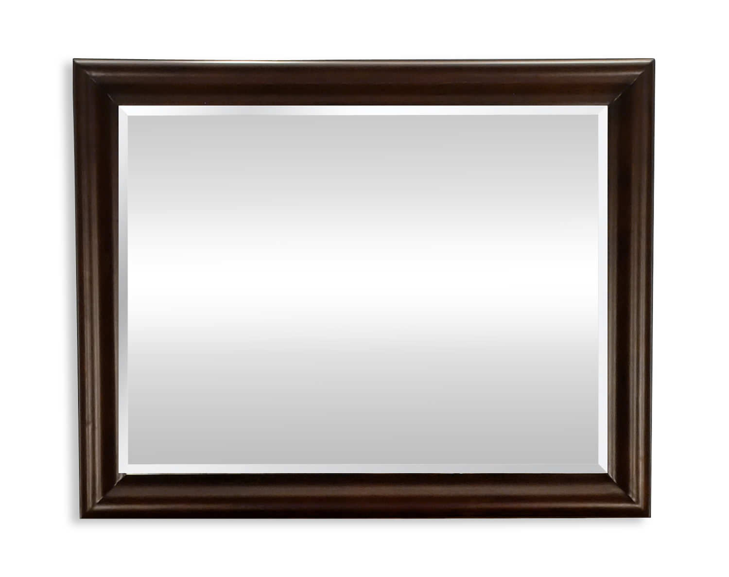 The Spencer bedroom suite offers an updated traditional urban look. Crafted from hardwood solids and mango veneers finished with a Burnished Mahogany finish. The mirror features beveled glass.
