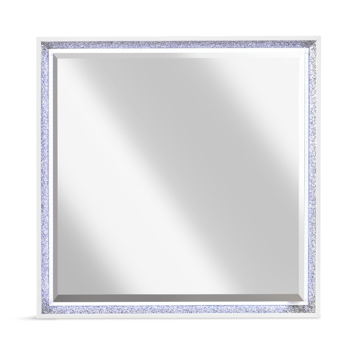Introducing the Vibe Essence Mirror, a stunning addition to your home décor. This mirror exudes elegance and glamour with its white color and sleek design. Enjoy the convenience of adjusting the lighting to one of the nine color settings with the included remote control. The LED lighting surrounds the mirror, providing a soft and inviting glow to enhance any room. Elevate your space with the chic and sophisticated Glam style of the Vibe Essence Mirror. A must-have for those who appreciate both style and functionality.