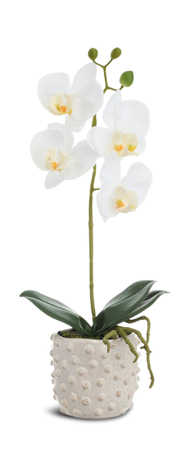 Introducing the HOM Furniture Phalaenopsis White Orchid, a stunning addition to your space that brings the beauty of the outdoors inside. This single orchid plant is perfect for displaying in any room, whether it's your bedroom, spare bedroom, kitchen, or office. Nestled in a decorative white ceramic vase, this tabletop plant exudes elegance and sophistication. Elevate your décor with this exquisite orchid and add a touch of freshness to your surroundings. Embrace the tranquility and beauty of nature with the HOM Furniture Phalaenopsis White Orchid.