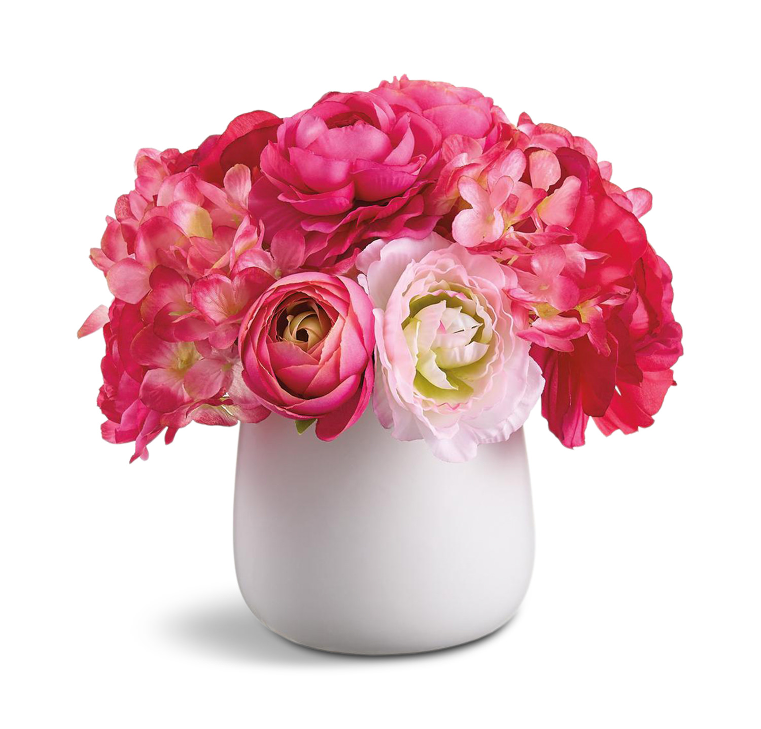 Introducing the stunning Pink Ranunculus/Hydrangeas arrangement from HOM Furniture! This beautiful ensemble of pink ranunculus and hydrangeas is the perfect blend of elegance and simplicity. Nestled in a striking white ceramic vase, this arrangement is sure to brighten up any space in your home. Whether displayed on an accent table or adorning your kitchen counter, these lifelike blooms will add a touch of beauty to your décor. Elevate your space and enjoy the everlasting charm of these gorgeous flowers.