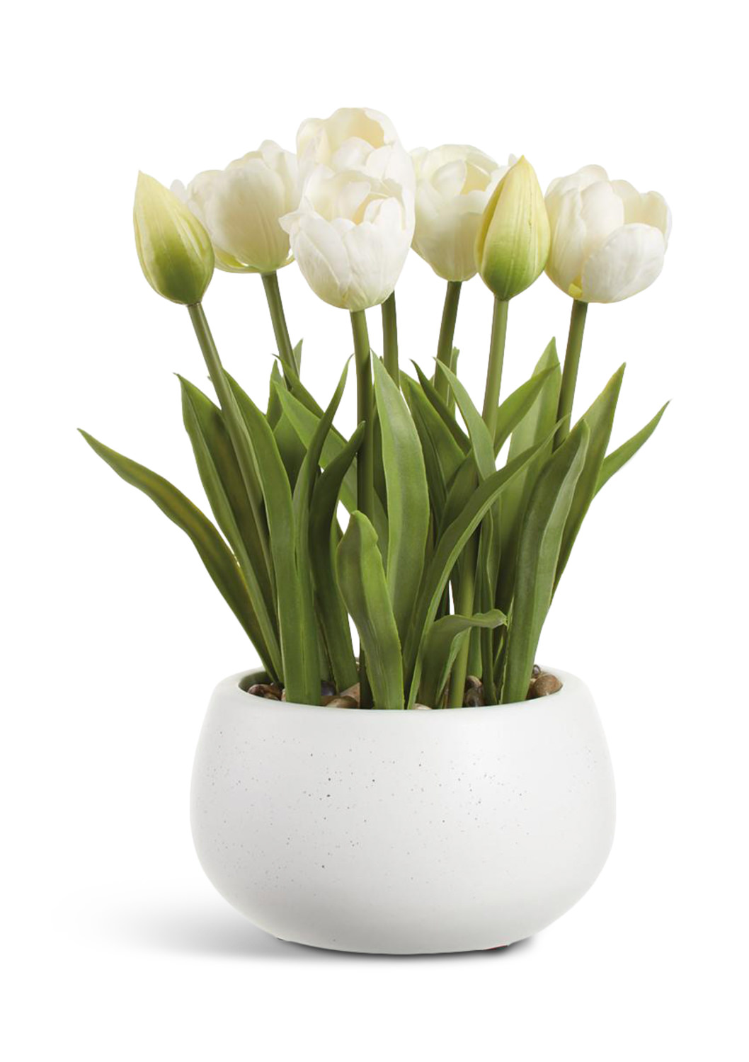 Bring a touch of the great outdoors into your living space with our exquisite White Tulips in a striking white ceramic vase. These beautiful blooms feature delicate white petals and vibrant green stems, creating a fresh and natural look that will brighten any room. The simple yet elegant design will add a touch of sophistication to your home décor. Embrace the beauty of nature with HOM Furniture's White Tulips arrangement.