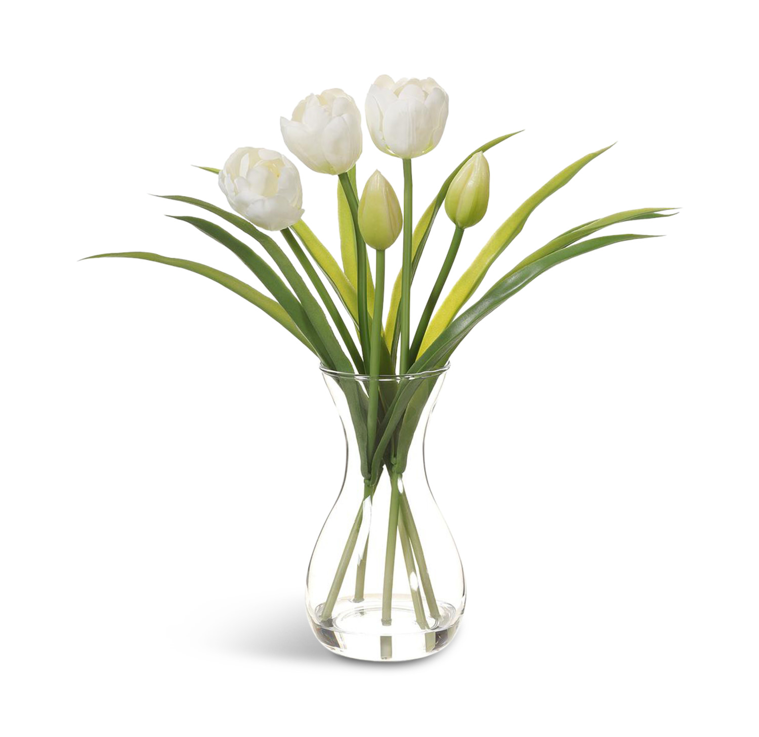 Brighten up your space with the delicate beauty of our White Tulips arrangement from HOM Furniture. Perfect for a coffee table or dining table centerpiece, these vibrant white blooms are set to bloom and add a touch of elegance to any room. The clear hourglass-shaped glass vase complements the natural beauty of the tulips, creating a stunning focal point in your home décor. Bring the freshness of spring indoors with White Tulips, which will also surely bring joy and charm to your surroundings.