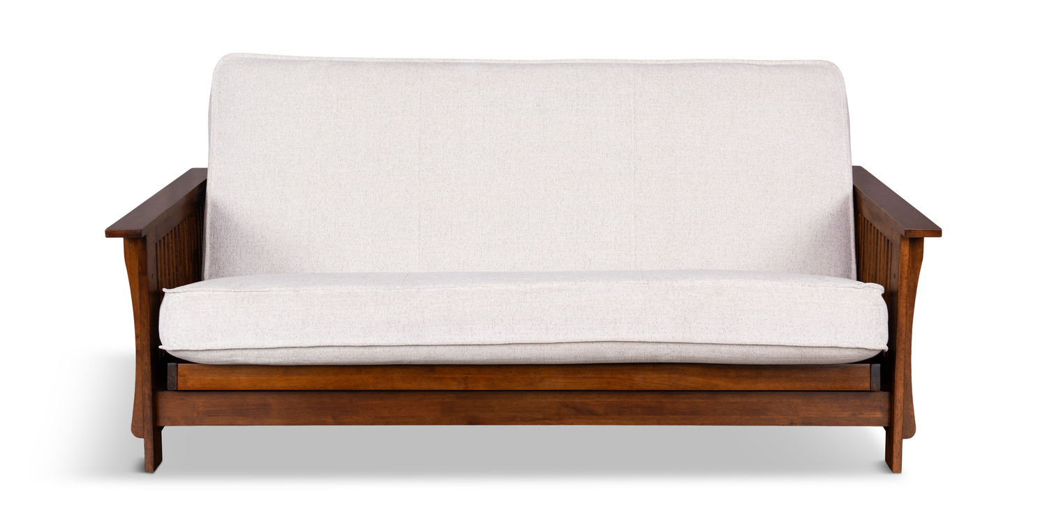 Introducing the Baxter Mission Futon from HOM Furniture, a perfect blend of style and functionality! Crafted with a solid hardwood frame, this futon boasts durability and timeless appeal in a sleek, Mission-style design. The hinged mattress allows for a cleaner presentation, while the USB port with a convenient 6'5" cord ensures you can stay connected without hassle. With easy front operation and a 6-leg support system, this futon offers both comfort and stability. The zero wall clearance feature makes it ideal for smaller spaces, maximizing your room layout.