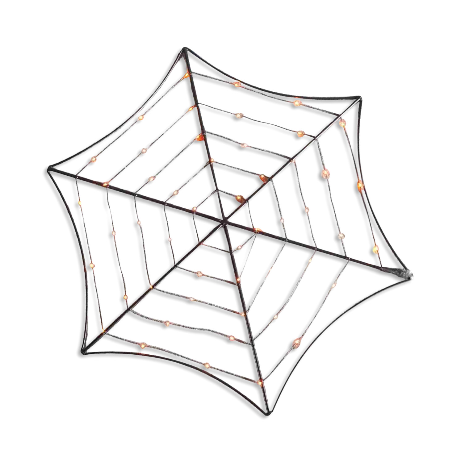 Looking to spookify your space this Halloween season? Look no further than the HOM Furniture Spider Web! This eerie decoration features a sturdy metal black frame and 52 LED orange lights that will send shivers down your spine. Its round shape and black color make it a versatile piece that will add a touch of haunting elegance to any room. Requires 3 AA batteries, not included.
