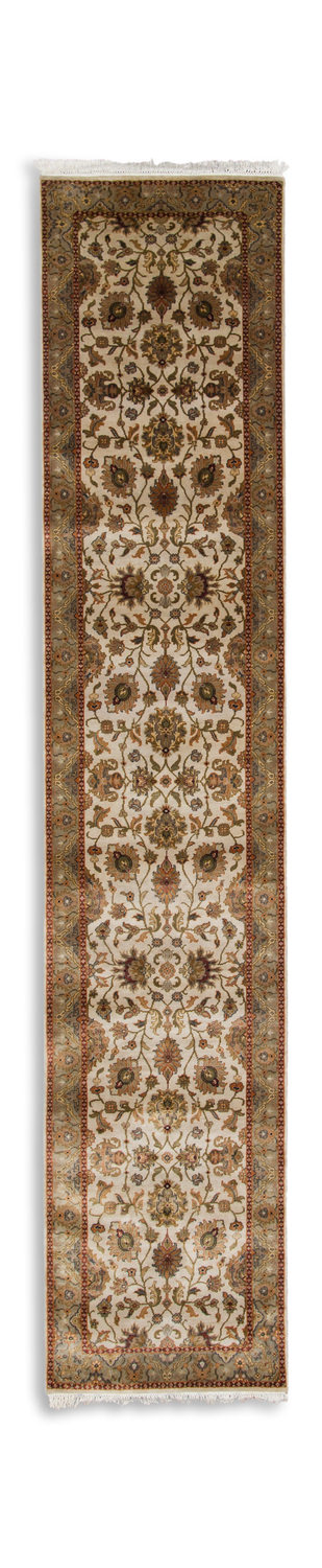This beautiful one of a kind rug was hand selected by our rug buyers in India. It is hand knotted and made of 100% premium wool and will add color and warmth to any room. Put this traditional style rug runner in your hallway or place one next to your bed in the master suite. This rug is only available at the specified showroom listed.