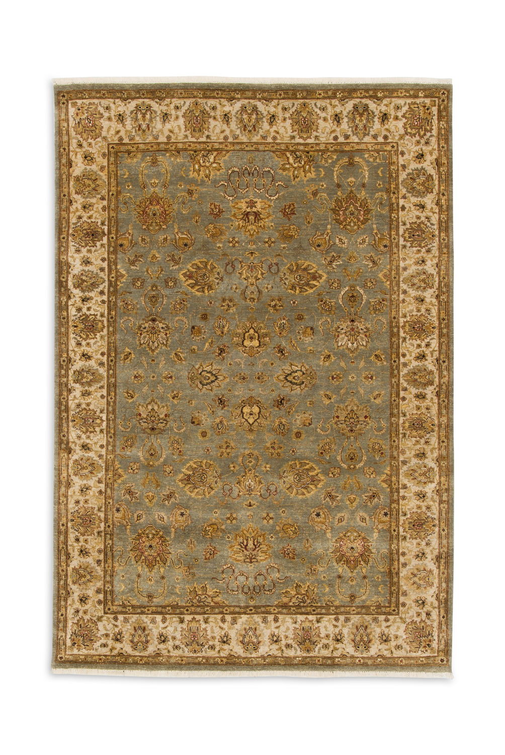 Add this traditional area rug to enhance the style and decor of your traditional to transitional living room, bedroom or more. The classic motif and light blue and ivory colors will bring a comforting warmth to your room, as well as a timeless design. This rug is only available at the specified showroom listed.