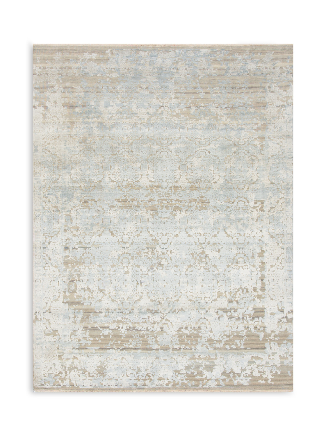 This beautiful one of a kind rug was hand selected by our rug buyers in India. It is hand knotted and made of 100% premium wool and will add color and warmth to any room. They subtle grey pattern will add sophisticated to your room's design. This rug is only available at the specified showroom listed.