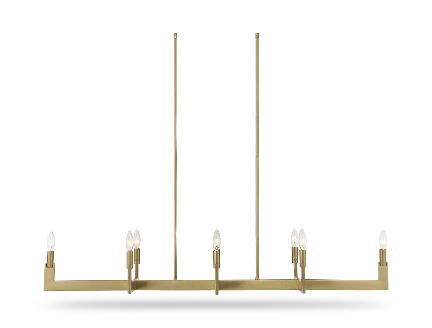 Elevate your space with the Cordoba 8 Light Linear Chandelier from HOM Furniture. With its clean, hefty lines and robust framework in a striking natural brass finish, this chandelier exudes timeless elegance. The chandelier features 8-60 watt max candelabra sockets, allowing for ample illumination. Adjustable-length stems offer customizable installation options, while the included 20' wire provides flexibility in placement. Upgrade your decor with this exquisite piece from the prestigious Uttermost brand, showcasing brass color accents that enhance any room with sophistication and style. Illuminate your home with grace and luxury with the Cordoba 8 Light Linear Chandelier.