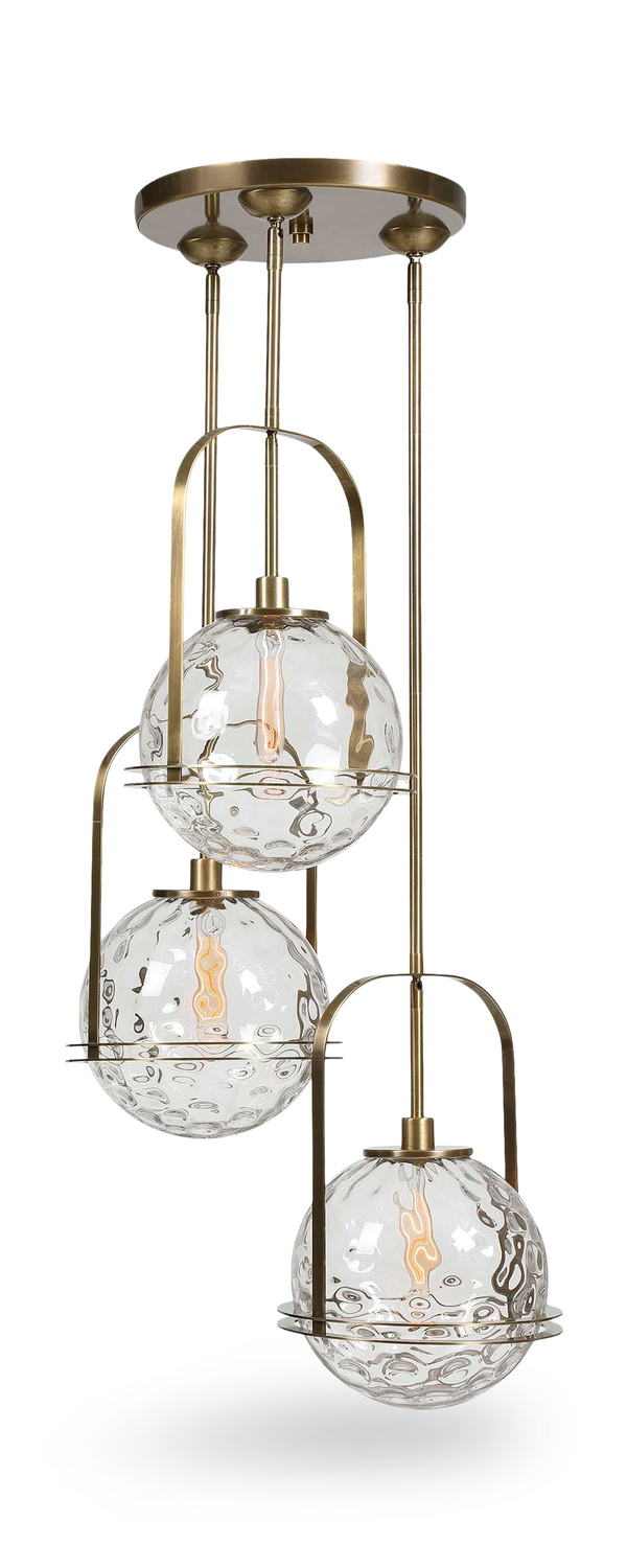 Elevate your space with the Mimas 3 Light Cluster Pendant from HOM Furniture. Featuring soft contemporary lines and oversized floating spheres of clear watered glass, this pendant light is a stunning fusion of modern and classic design elements. The rich antique brass accents add a touch of sophistication to the overall aesthetic, making it a perfect addition to any stylish interior. This pendant light comes with three 40 Watt max Edison sockets, allowing you to illuminate your space with ease (bulbs not included).