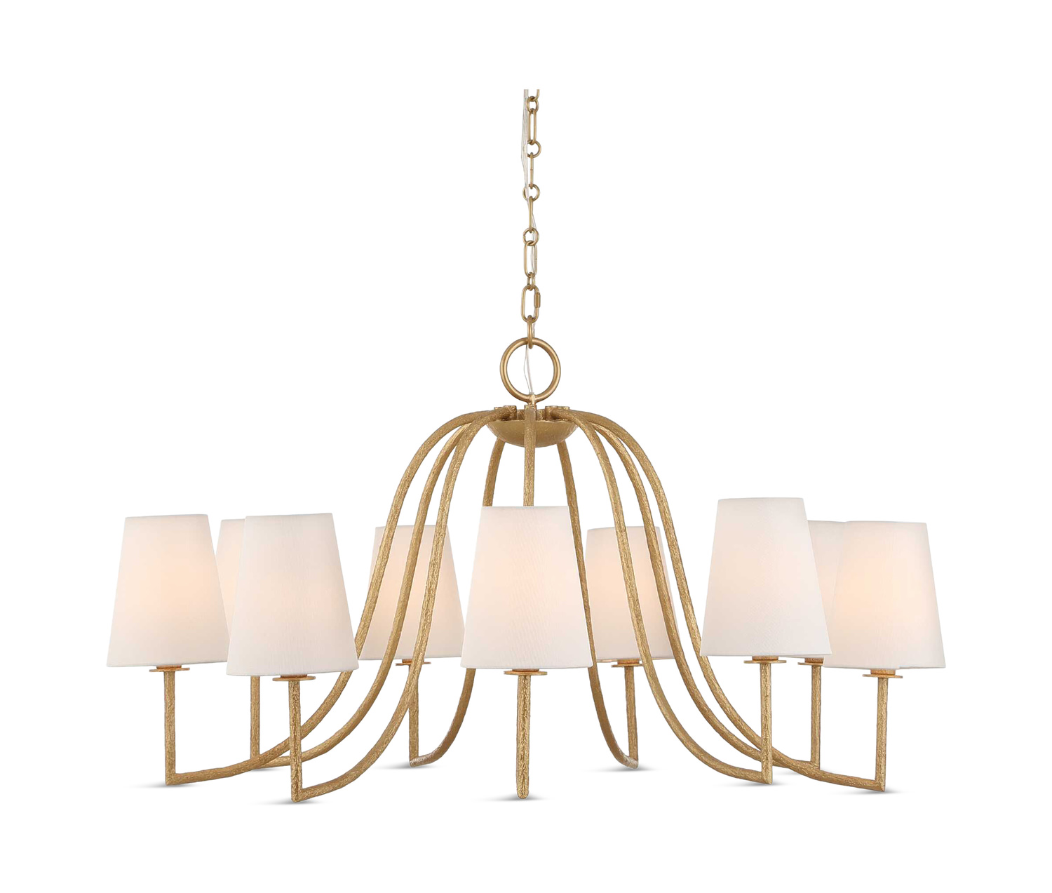 Illuminate your space with the timeless elegance of the Seville 9 Light Gold Chandelier from HOM Furniture. This exquisite chandelier features a heavy textured golden finish that exudes sophistication, complemented by white linen fabric shades for a touch of luxury. With 9-40 Watt Max candelabra sockets, this chandelier offers ample lighting to brighten up any room. The chandelier is supplied with 20 feet of wire and a 7-foot decorative link chain, allowing for customizable installation. Bring a touch of opulence to your home with the Seville 9 Light Gold Chandelier from Uttermost.