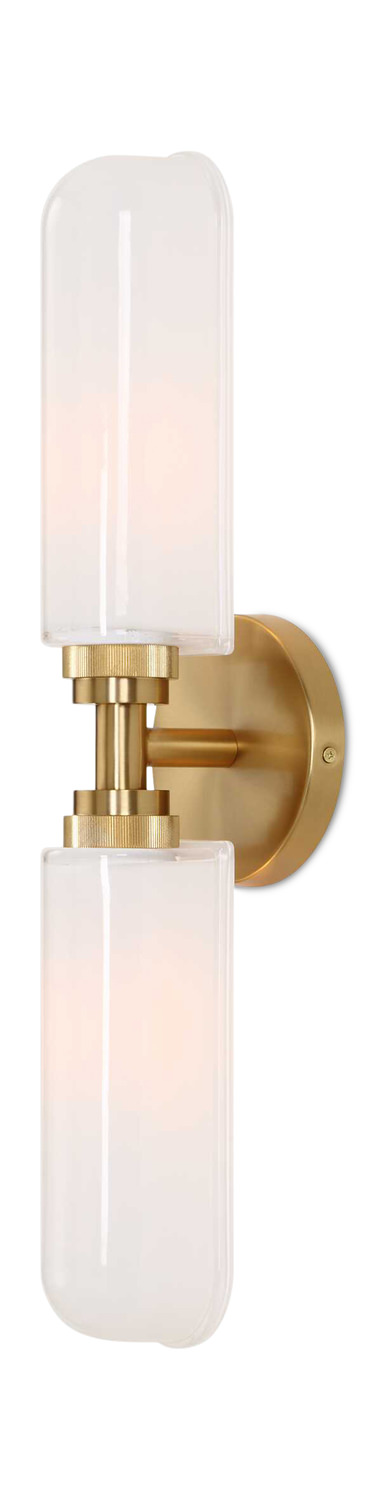 Elevate your space with the timeless allure of the Wellsville 2 Lt Brass Sconce from HOM Furniture. This elegant sconce exudes old-school tradition with its warm brass finish and opal white glass, adding a touch of sophistication to any room. The versatile design allows for horizontal or vertical installation, perfect for use as a sconce or vanity light. Crafted with care, this sconce features 2-60 Watt max Edison sockets, making it ideal for creating a cozy ambiance. Our designers recommend using Type T bulbs to enhance the warm brass glow (bulbs not included).