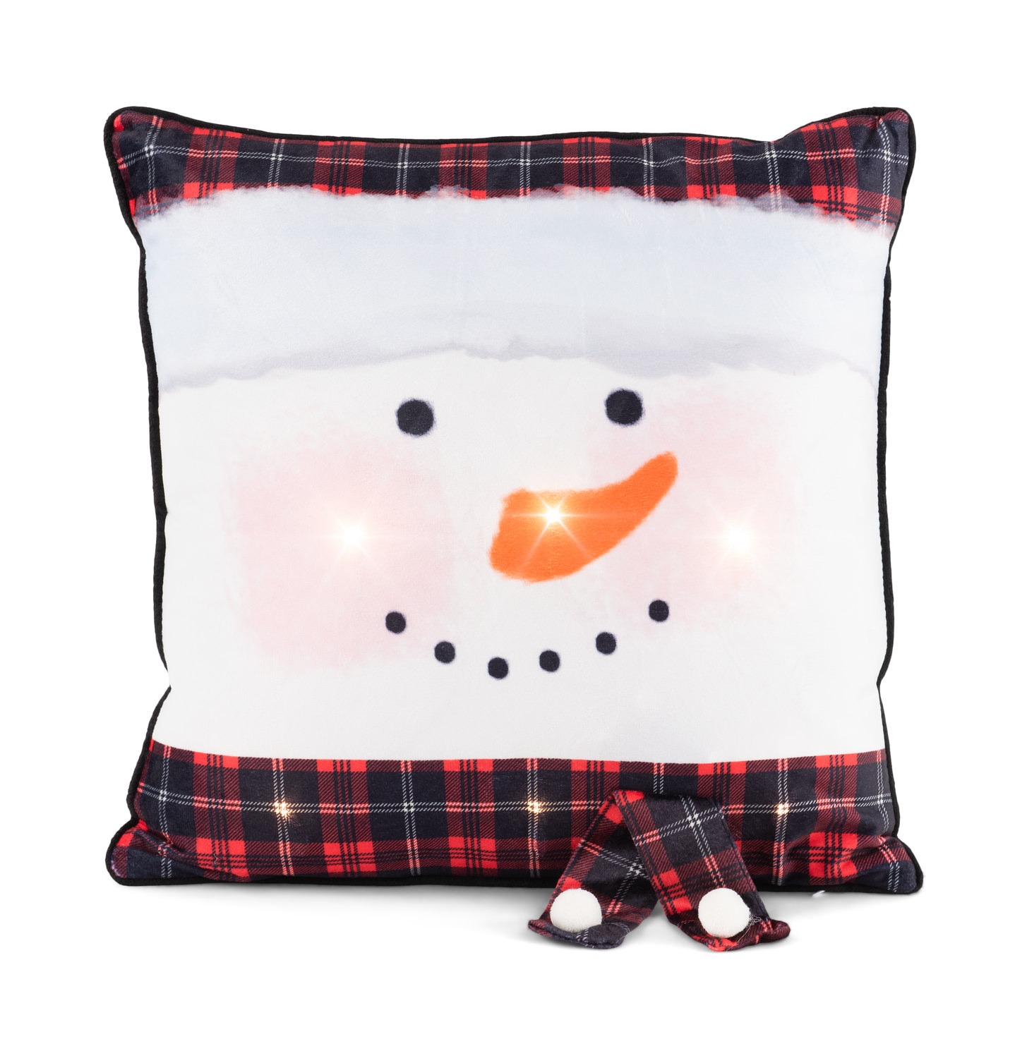 This jolly black and red 18" Plaid Snowman Pillow will illuminate any room in your house this holiday season. 2 AA batteries required, not included.