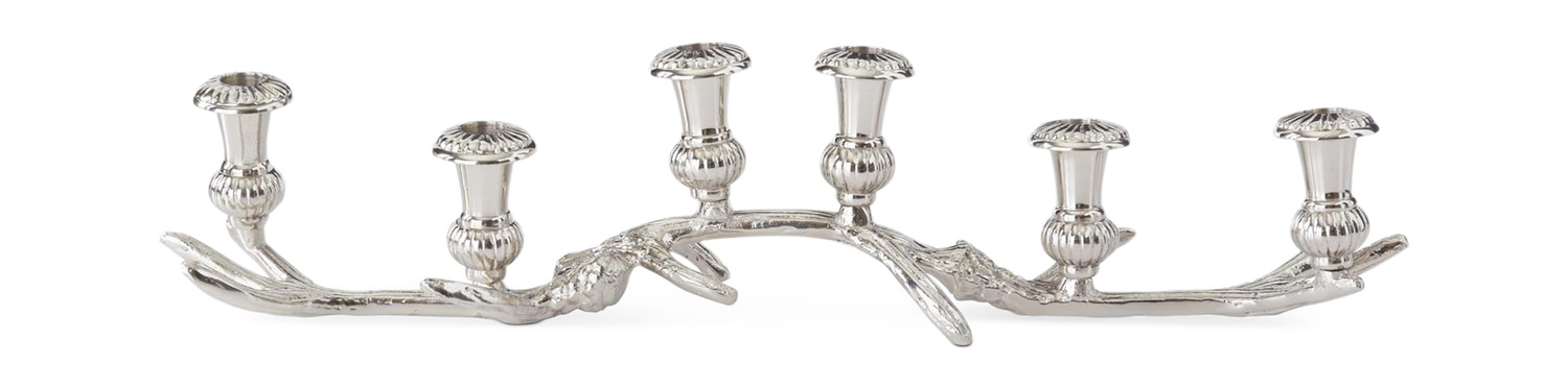 Add a touch of modern elegance to your holiday decor with the Antler Taper Candleholder from HOM Furniture. This sleek silver candleholder features a stylish antler design, perfect for adding a festive vibe to your home. Ideal for tabletop holiday decor, this piece is designed for indoor use, making it a versatile and eye-catching addition to your seasonal setup. Illuminate your space with a touch of sophistication and holiday charm with this must-have decor piece.