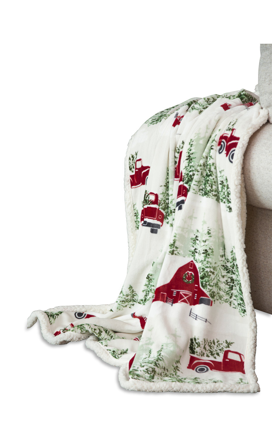 Get ready to cozy up in style this holiday season with the Christmas Barn And Truck Plush Sherpa Throw from HOM Furniture! This luxurious throw blanket measures 54" X 68", making it the perfect size to snuggle up with by the fireplace. Made with a polyester plush top and a soft Sherpa back, this blanket is not only incredibly soft but also provides extra warmth and comfort. Whether you're relaxing at home or need an extra layer of warmth during the chilly winter nights, this festive throw blanket is sure to be your new favorite cozy companion.
